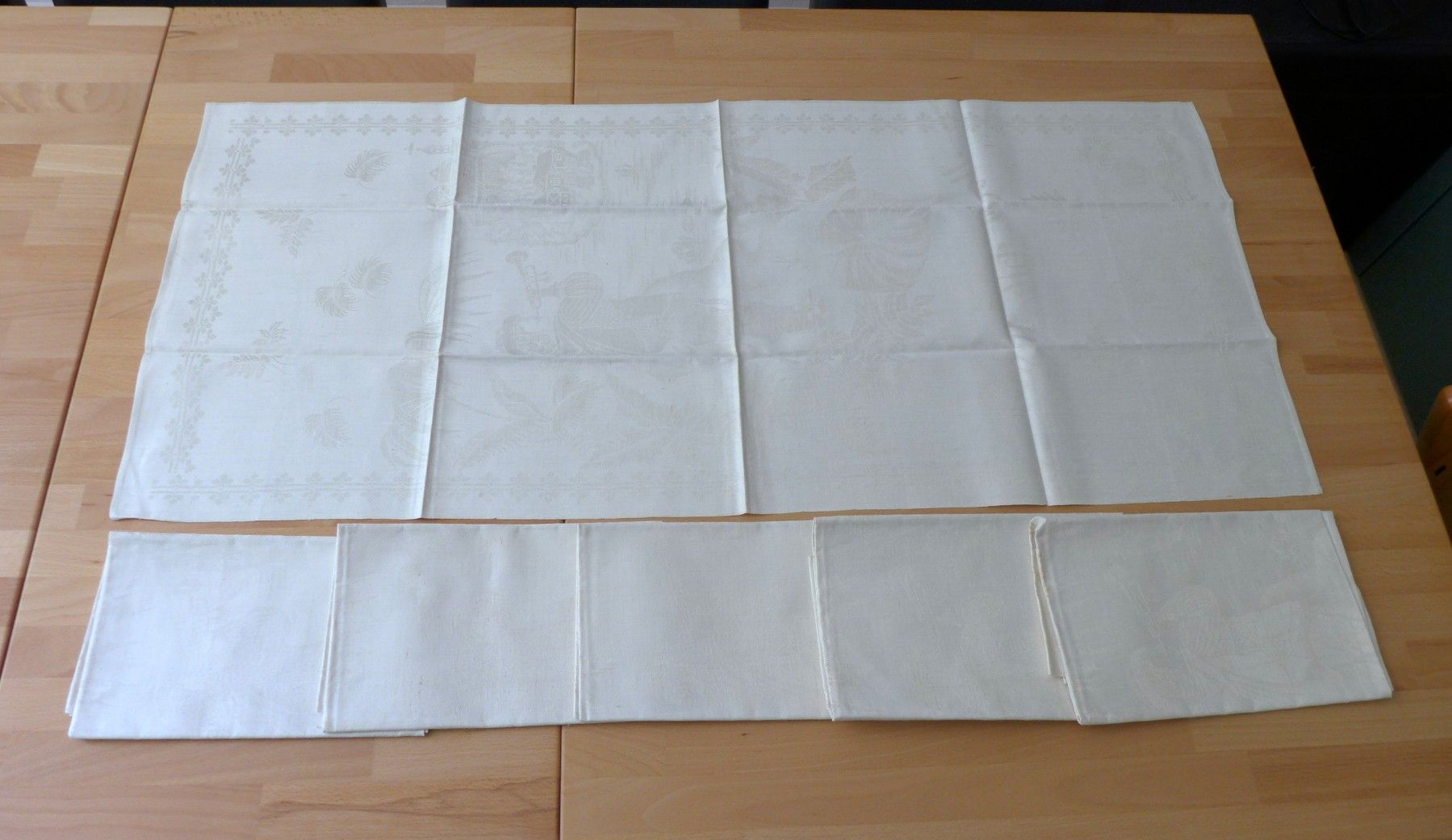 6 Handtücher Behüt dich Gott Trompeter Häuser Kirche Damast Leinen