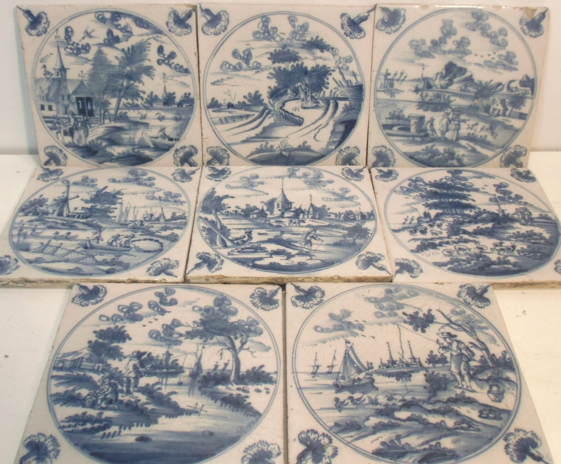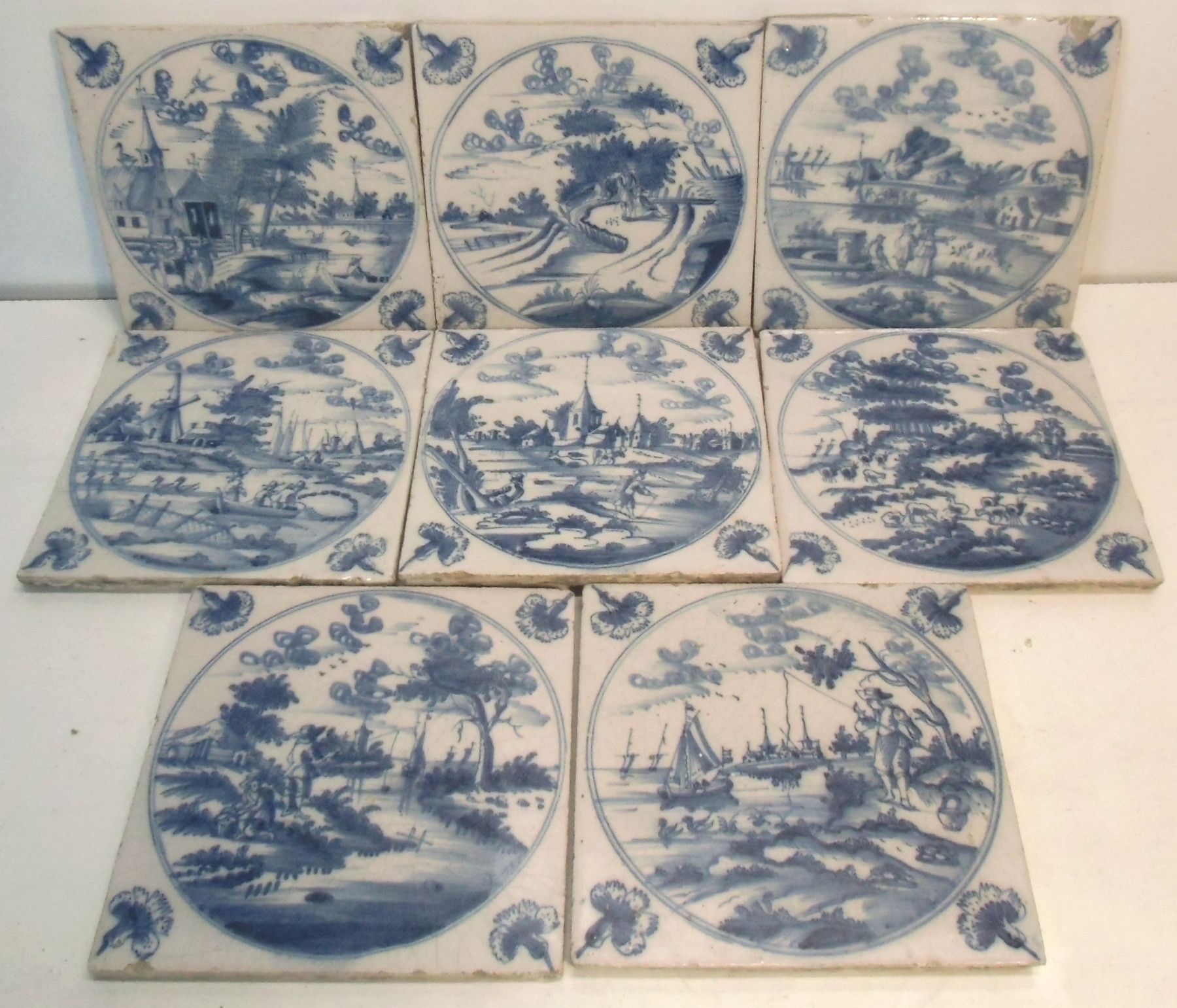 6 Wand-Fliesen um 1800. Ohne Marke. Herkunft: Holland. Gut erhalten. Maße: je H 13, B 13 cm. Antikes am Deich - Inh: Oliver Kipp-Trense