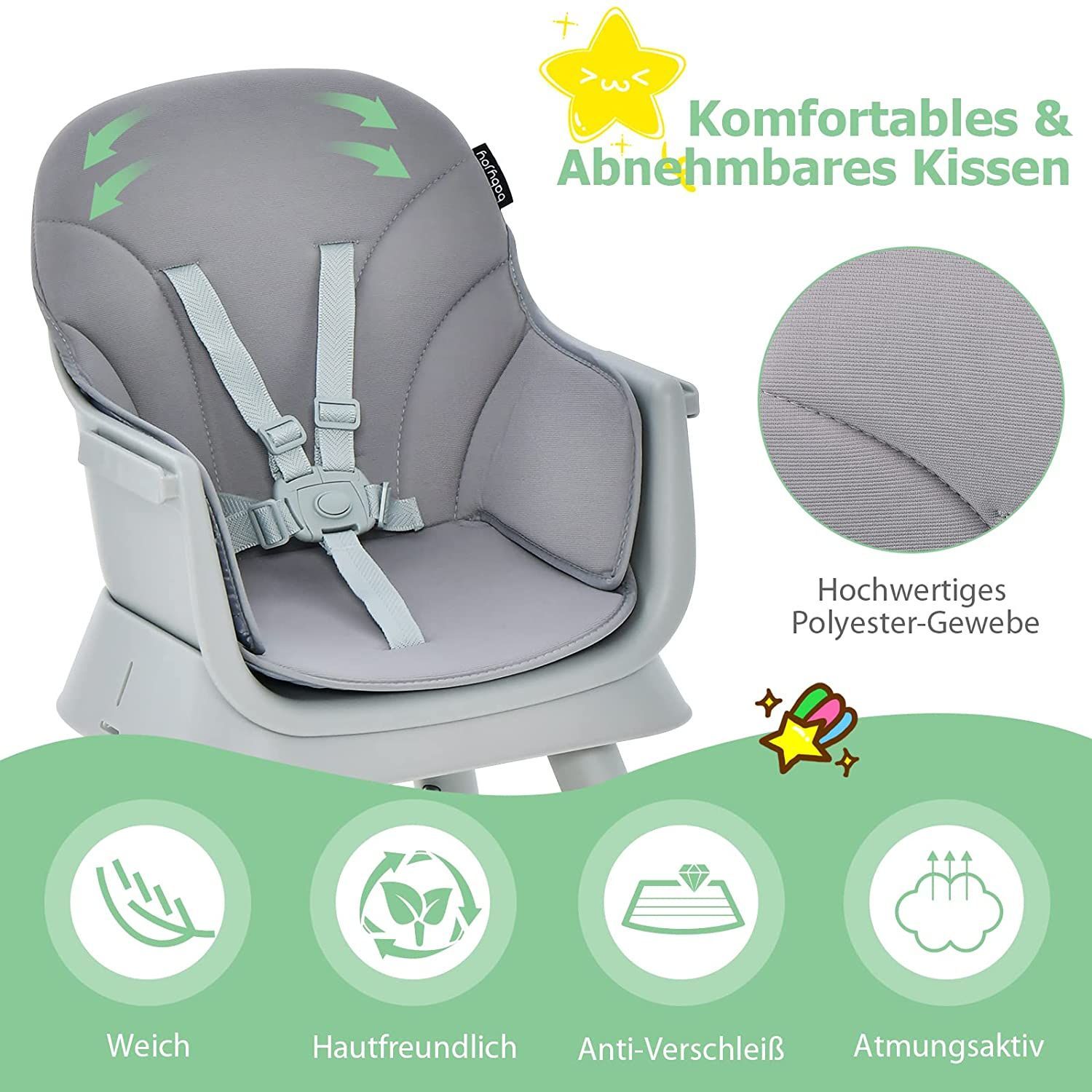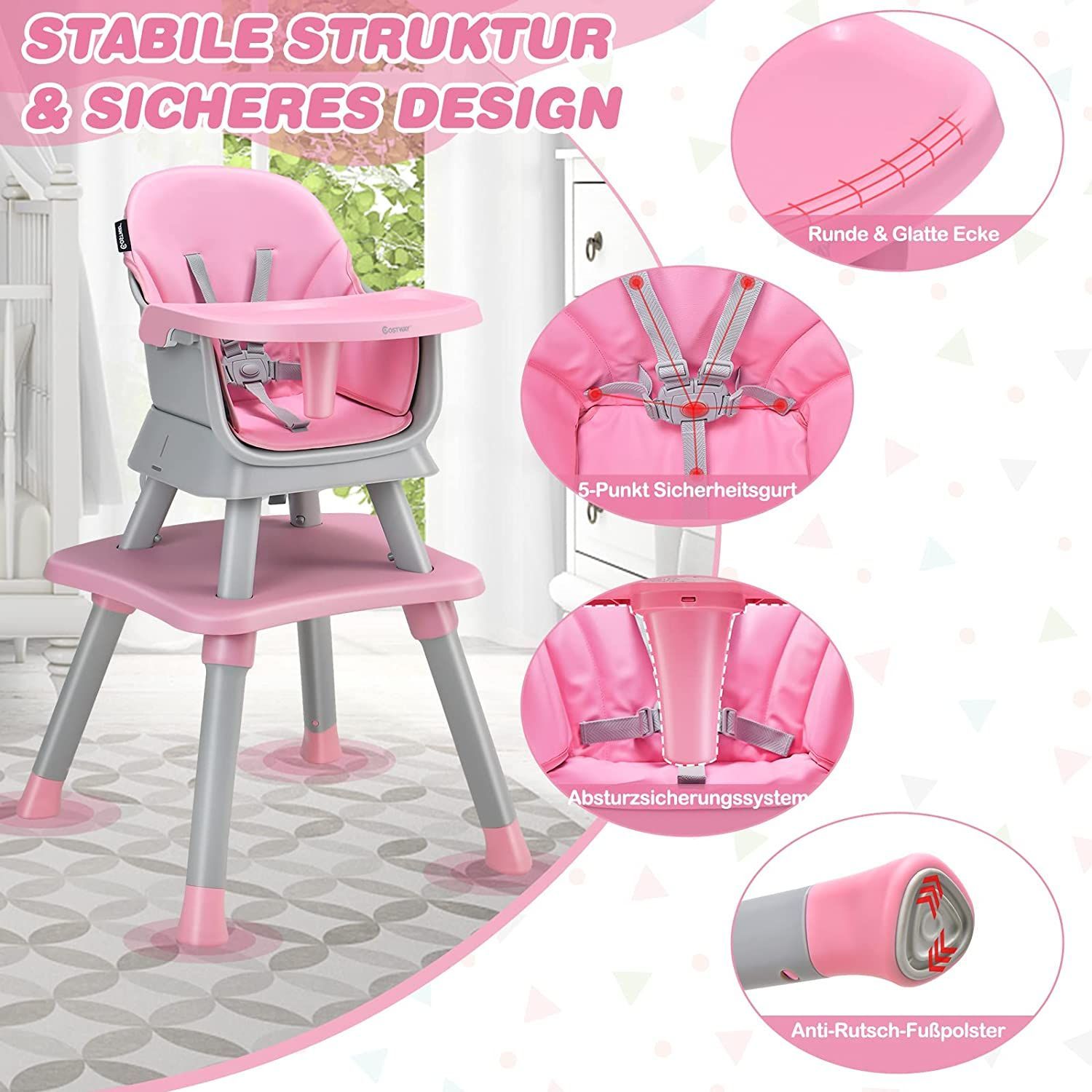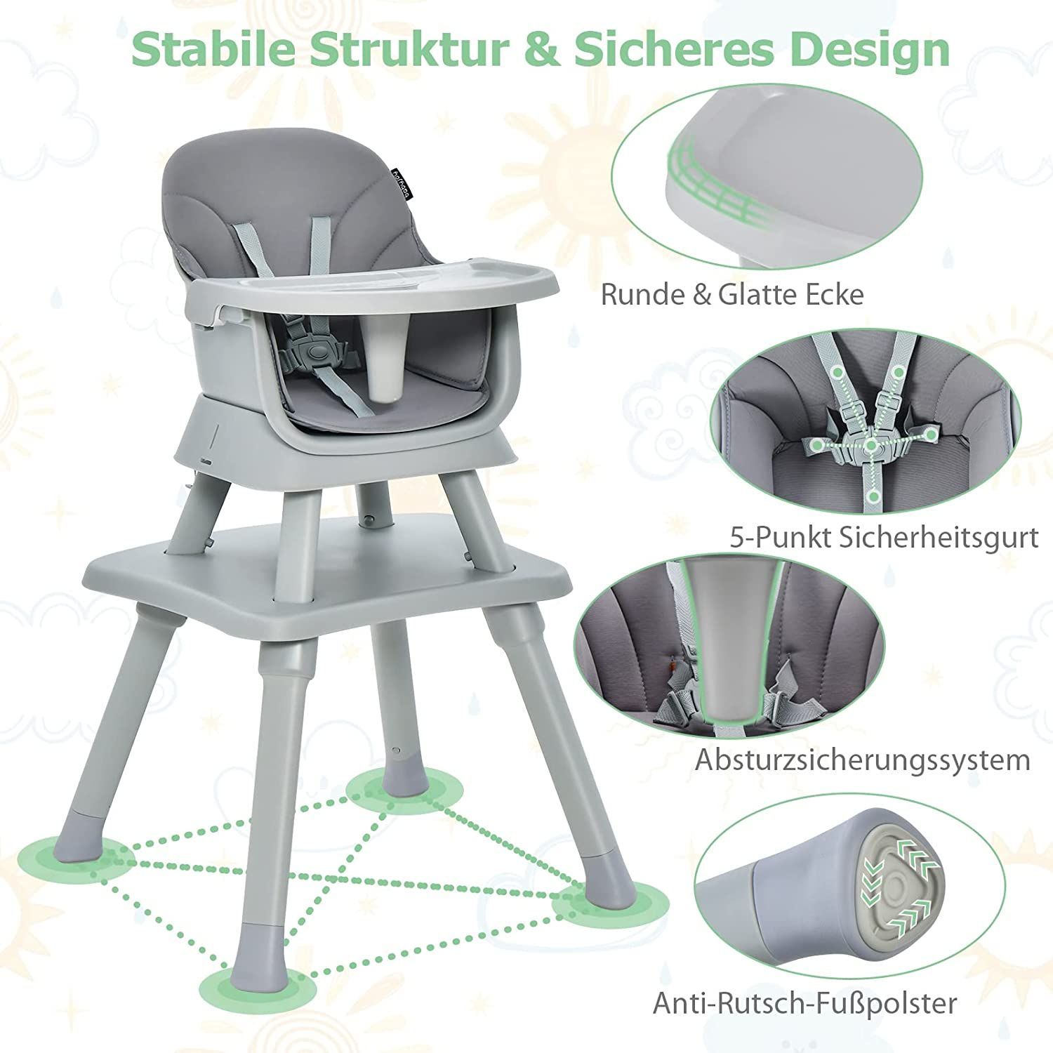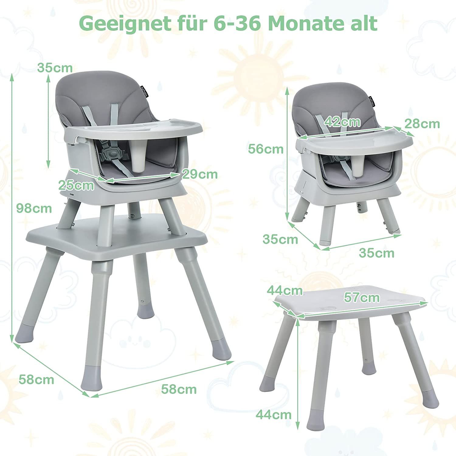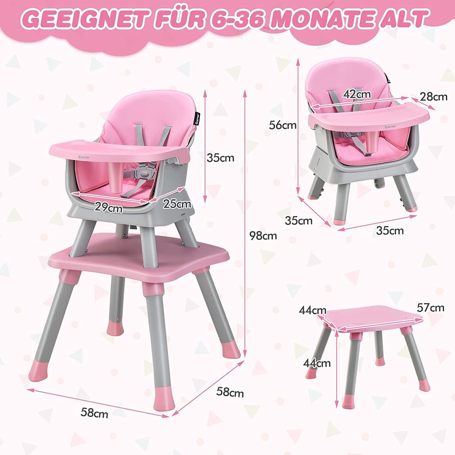 6-in-1 Babyhochstuhl, Hochstuhl & Essstuhl & Lerntisch & Bausteintisch, Babystuhl