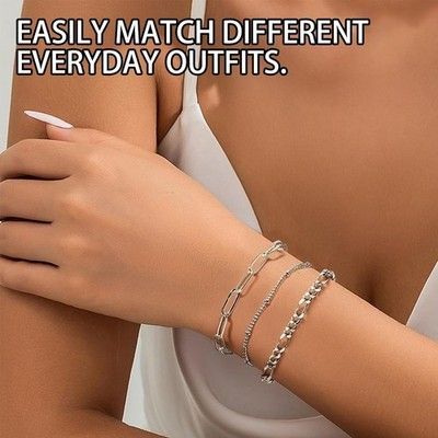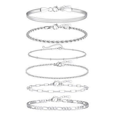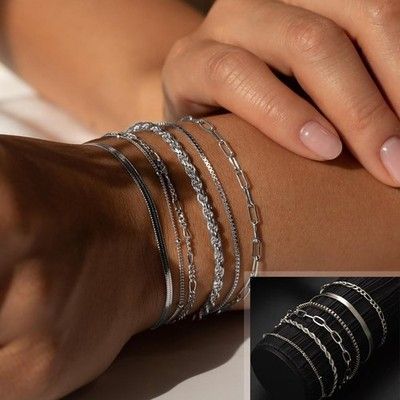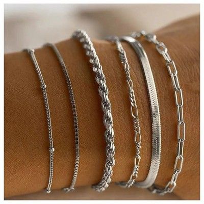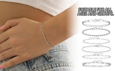 6 Ketten Armbander für Damen Verstellbar Modeschmuck Silber