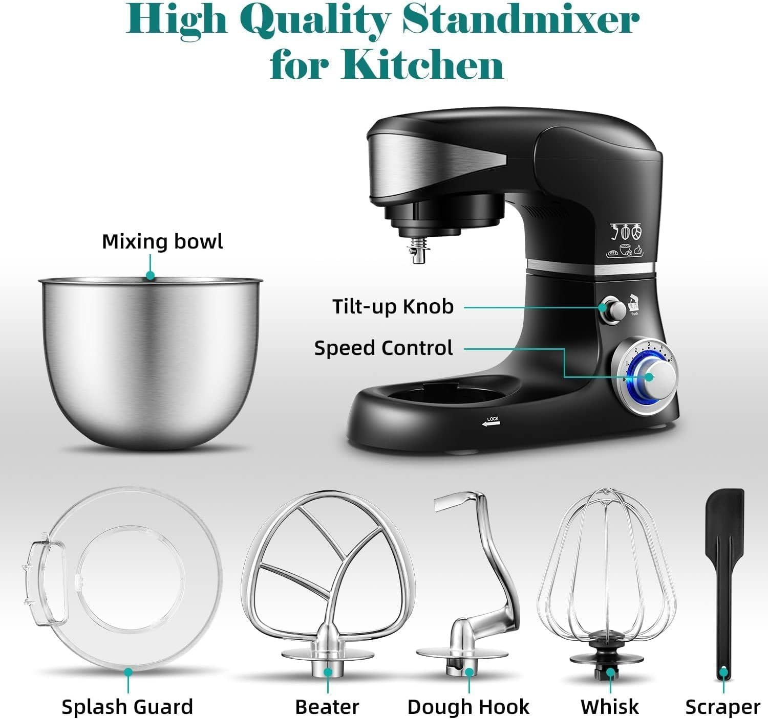 6-Liter-Küchenmaschine aus Edelstahl mit 1.600 W und 6 Geschwindigkeitsstufen - Royal