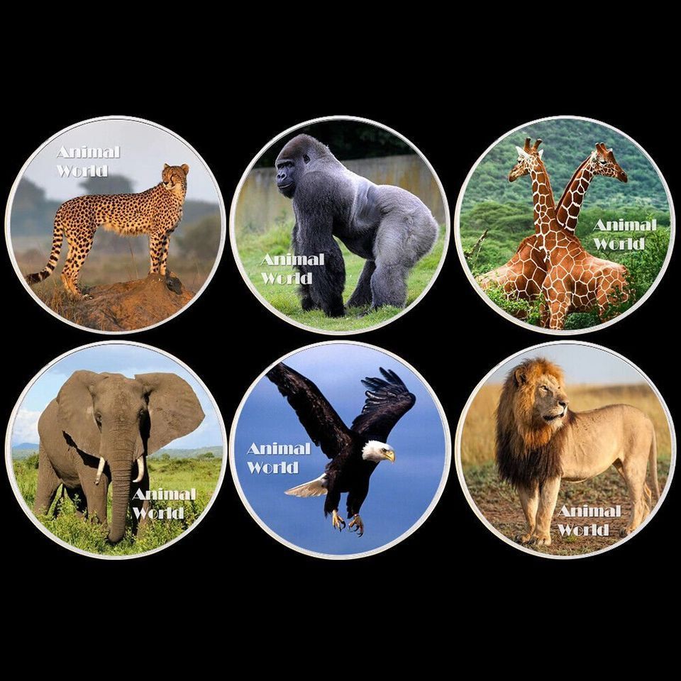 6 Medaillen Animal World Bedrohte Tierarten