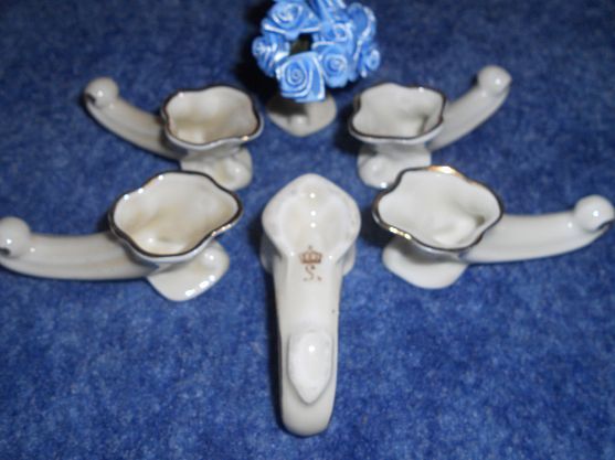 6 Messerbänkchen mit Tischvase Porzellanmanufaktur Oscar Schlegelmilch 1925-1932