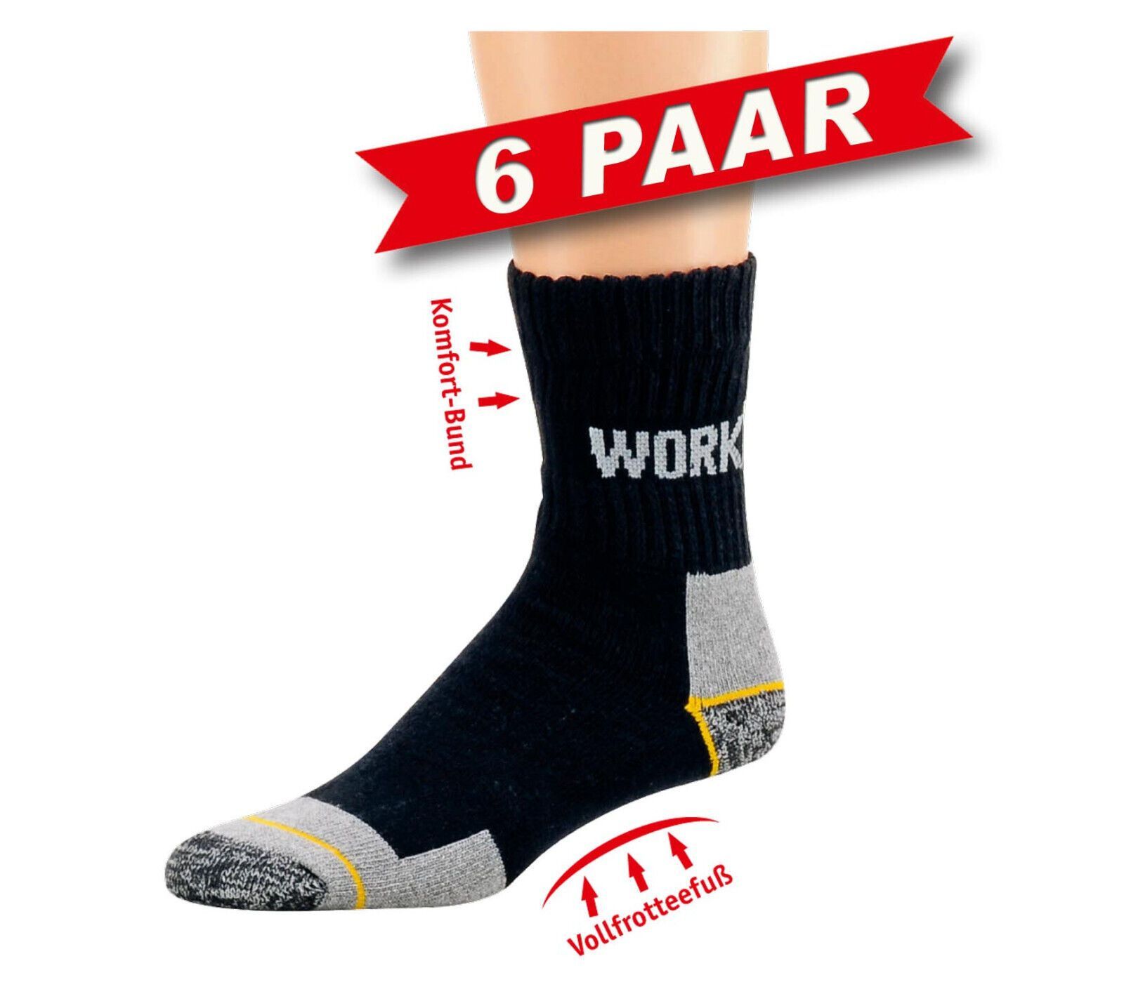 6 Paar robuste Arbeitssocken Work, Frottee-Sohle + Komfort-Bund, Herrensocken