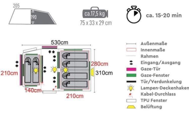 6 Personen Familien Zelt Tunnelzelt Pesadar Wassersäule 3000 mm