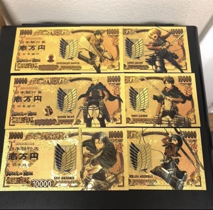 6 Sammler Goldfolie Banknoten Angriff auf Titan Zeichentrick (GBA051125)