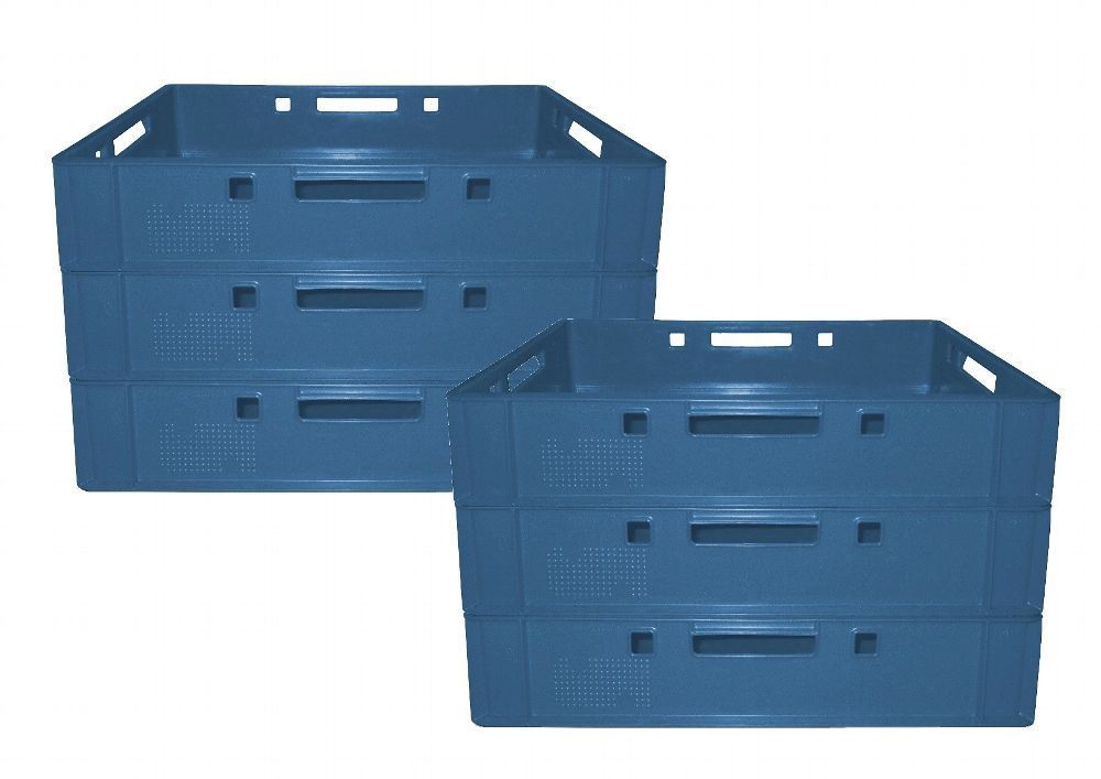 6 Stück Lagerkiste Transportbox Metzgerkiste Eurobehälter Stapelbehälter neu E1 blau