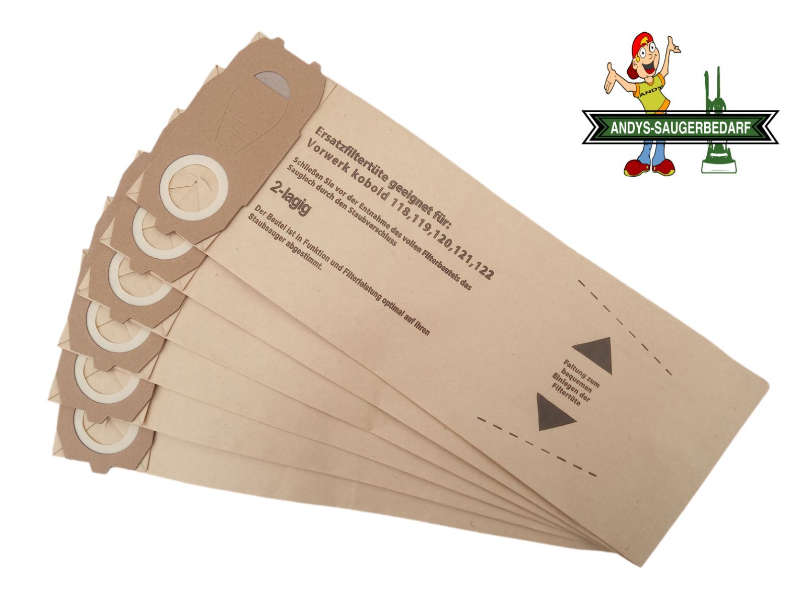 Andys-Saugerbedarf 6 Staubsaugerbeutel Filterüten geeignet Vorwerk Kobold VK 118 119 120 121 122 Artikelbeschreibung Sie erwerben 6 Staubsaugerbeutel. Mehrlagiges Spezialpapier. Mit Staubverschluss. Ohne umweltbelastendem Polybeutel. Lose im Versandkarton. Passend für Ihren Vorwerk Kobold VK 118, 11