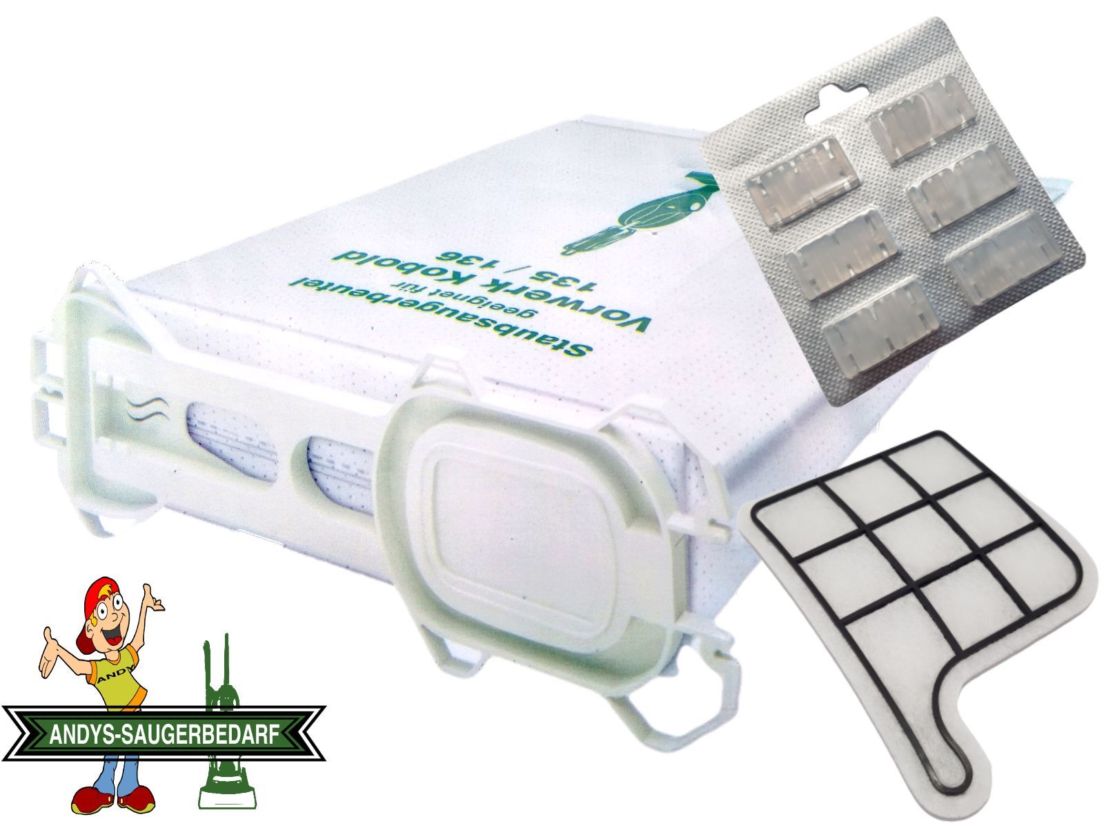 6 Staubsaugerbeutel Vlies geeignet Vorwerk Kobold VK 135 136 + 6 Duft + Filter
