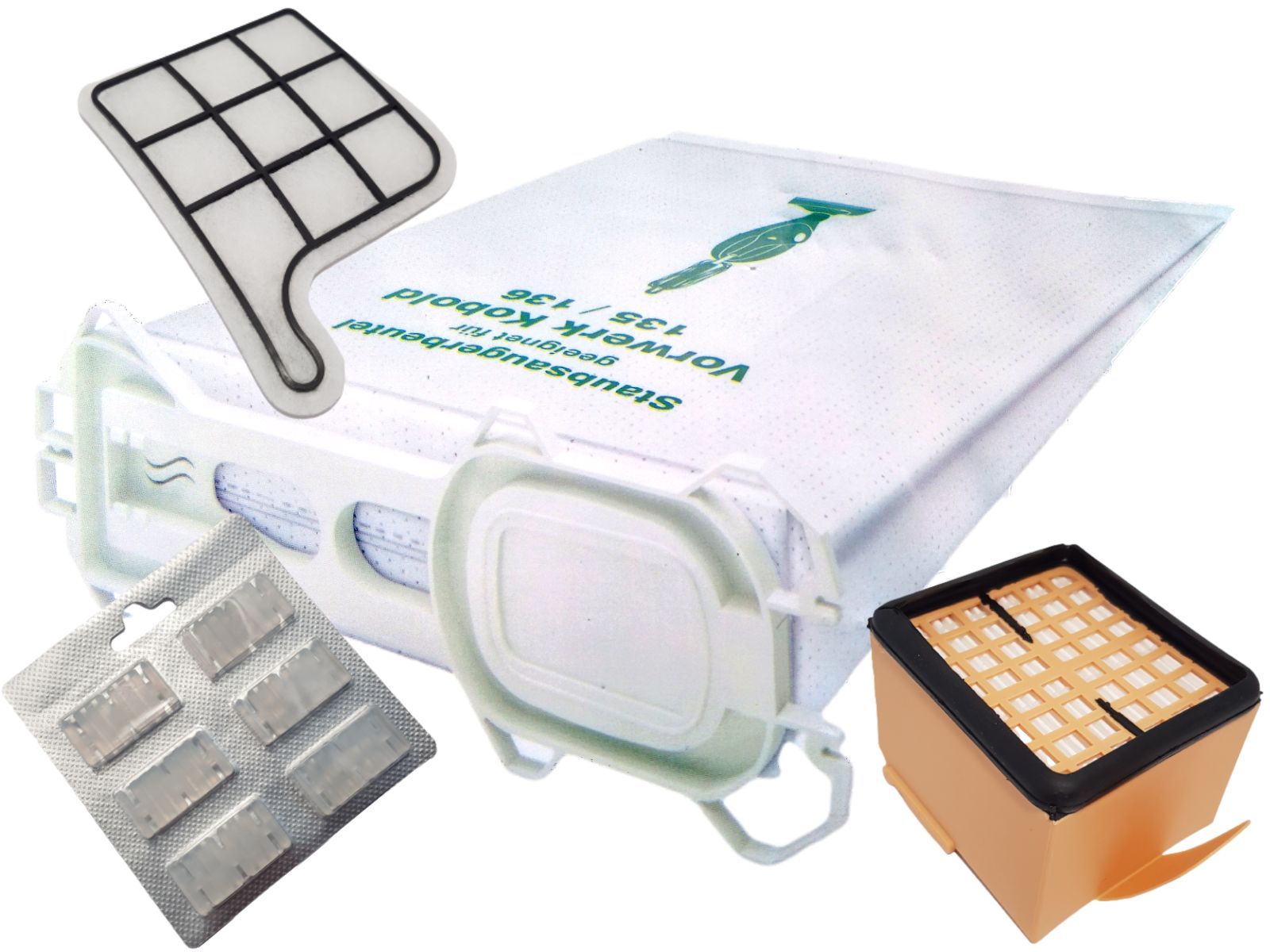 6 Staubsaugerbeutel Vlies geeignet Vorwerk Kobold VK 135 136 + Filterset + Duft