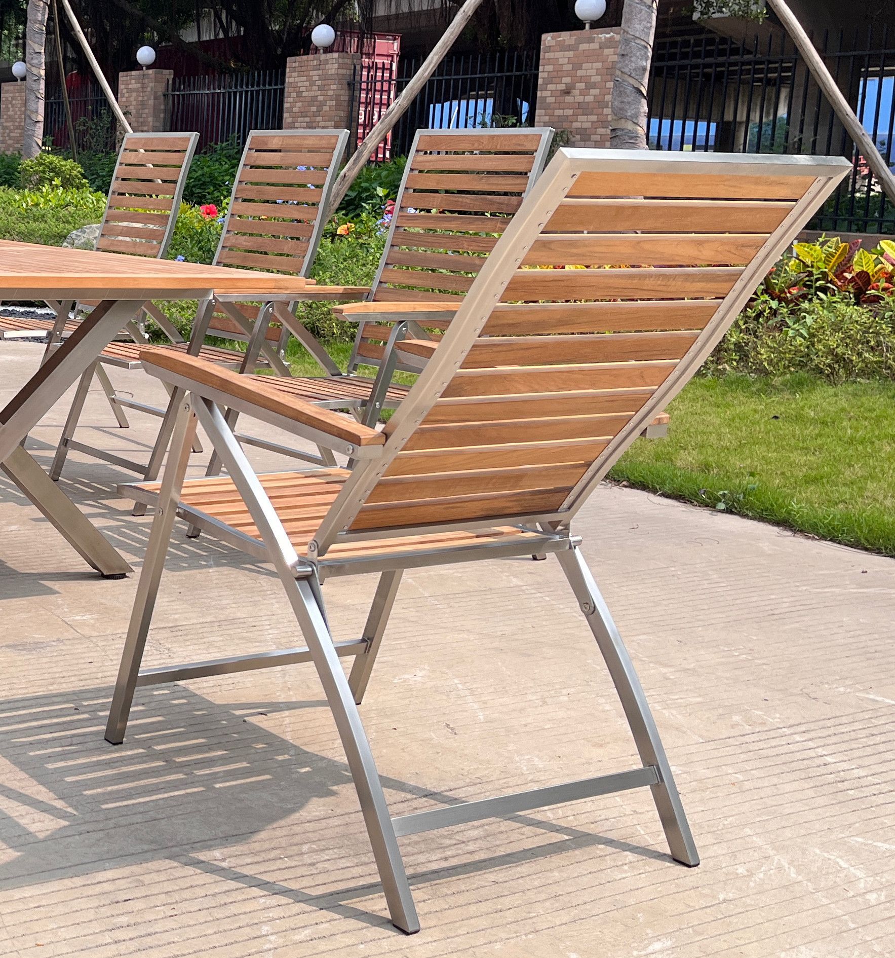 6 Stk ALEOS. Hochlehner Edelstahl A-Grade TEAK Holz klappbar 5-fach verstellbar
