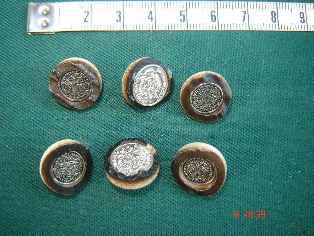 . 6 Stück Hornknopf echt Hirschhorn für Janker , Joppe , Strickjacke , Stulpen , Jacke , Bluse sehr schöne Oberfläche dunkel , relativ glatt mit einer Münz Einlage aus Metall der Durchmesser beträgt ca. 2cm ausgezeichnet verarbeitet aus deutscher Herstellung . Bitte sehen Sie sich hier alle meine an
