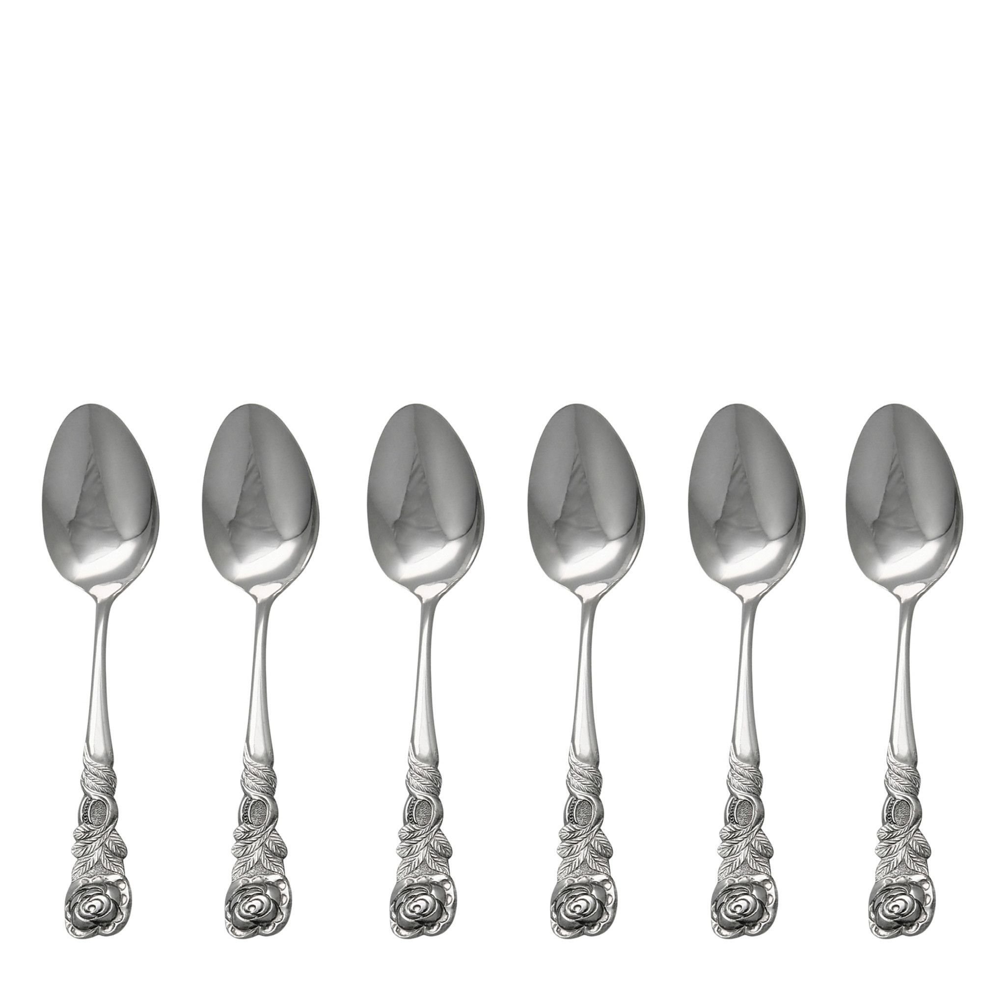 GRÄWE 6 Stück Espressolöffel Edelstahl, Rosendekor