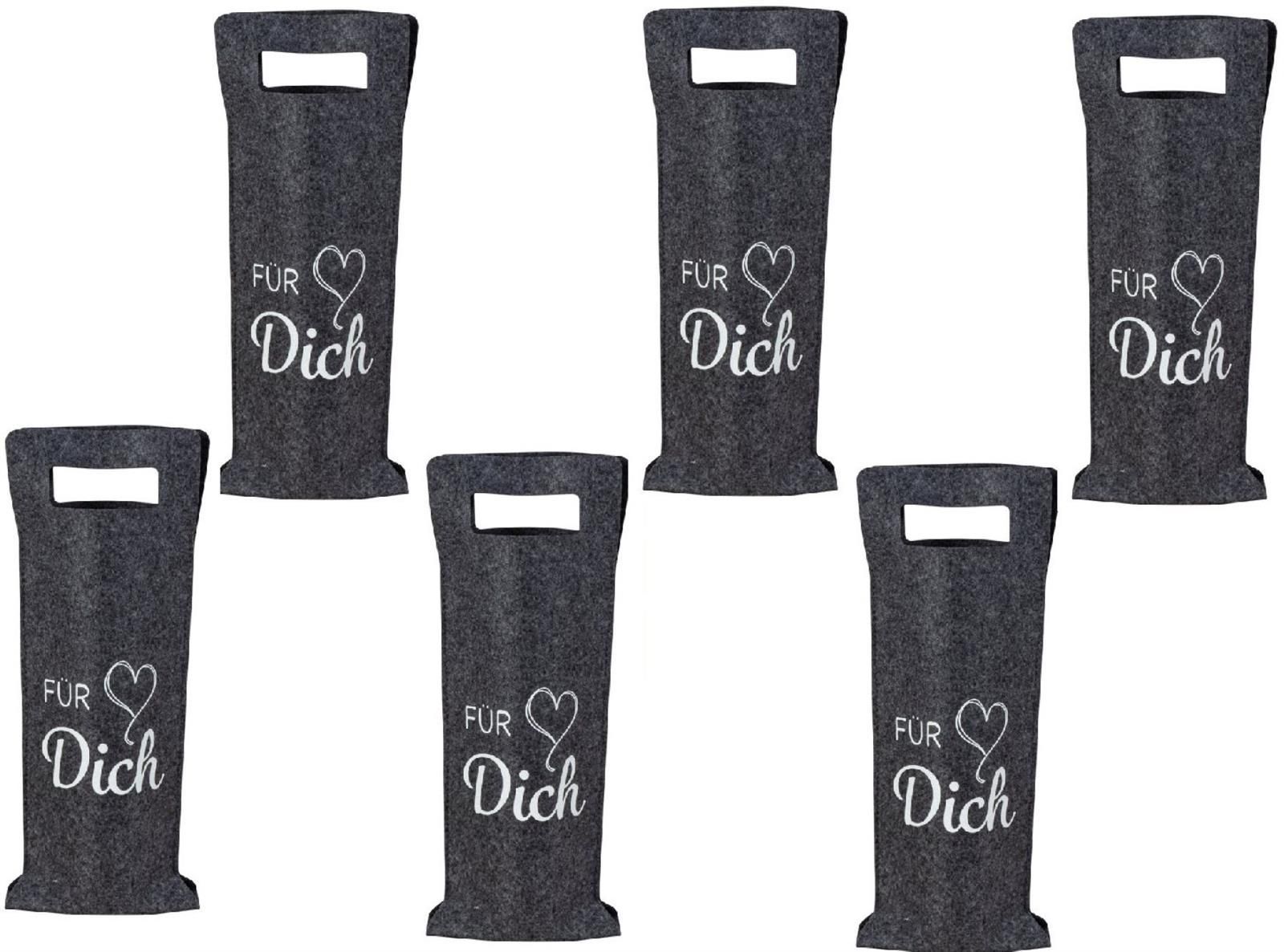 6 Stück Flaschentüten aus Filz Spruch "Für Dich" Geschenktaschen Weinflaschenhalter