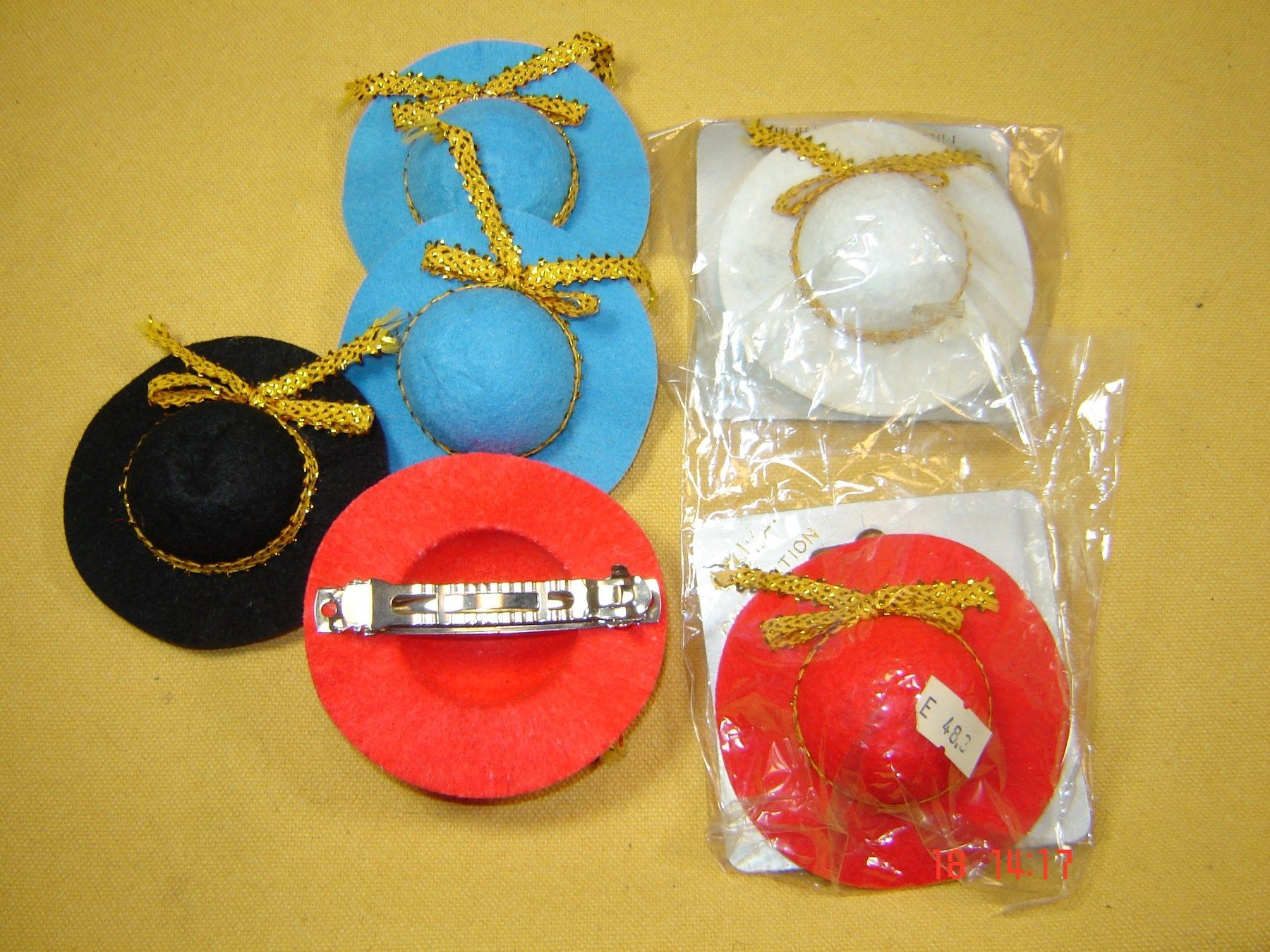 6 Stück Haarclip Haarspange mit Damen Filzhut klein 4 Farben