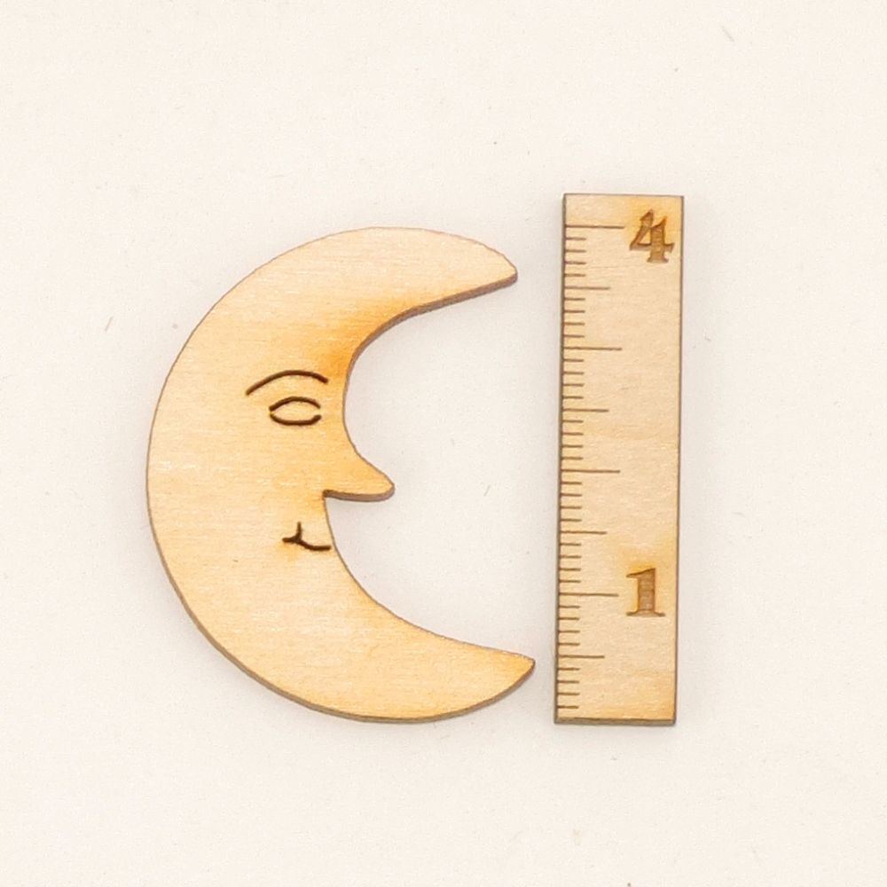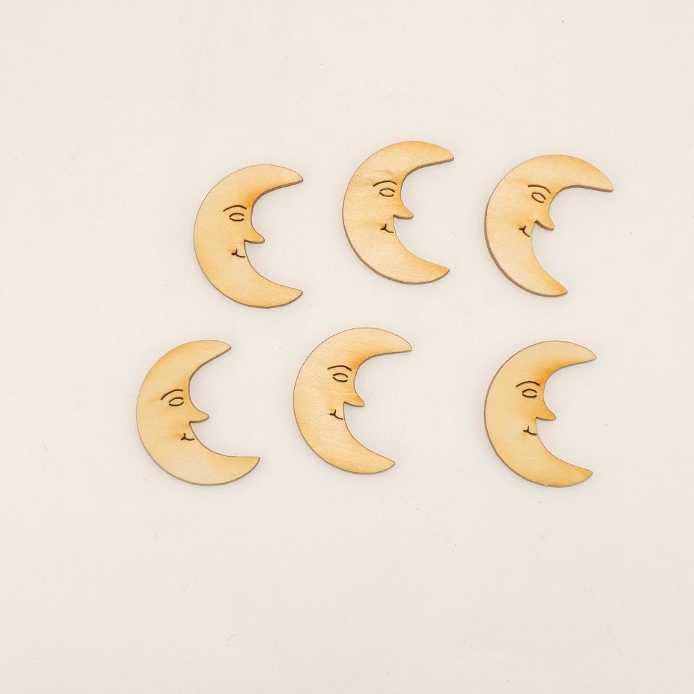 6 Stück Mond mit Gesicht 4 cm Holz Dekoration Basteln Kinder Streudeko