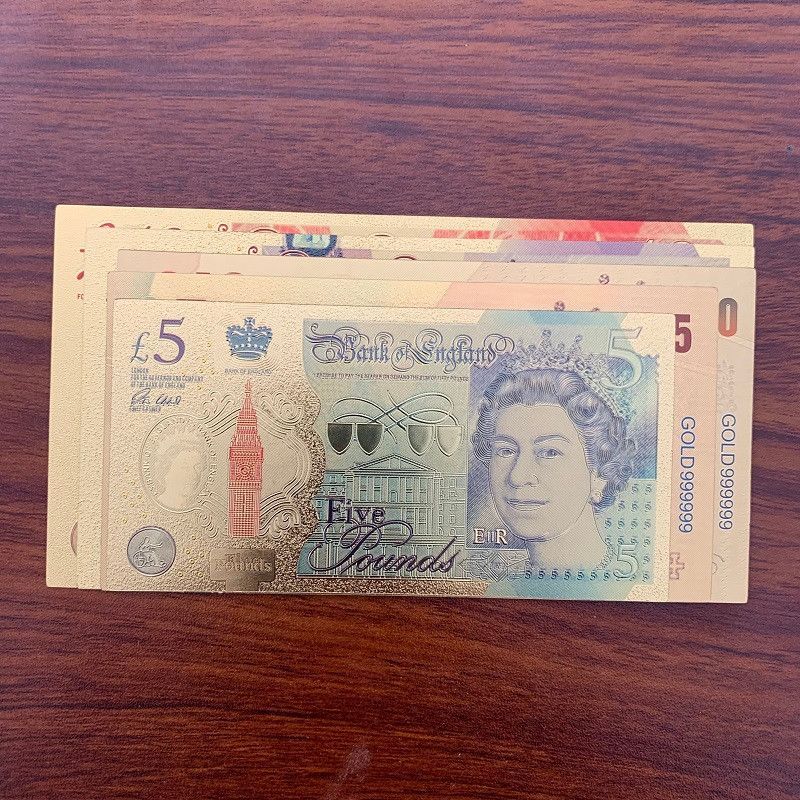 6 Stück Sammler Banknoten Großbritannein Goldfolie