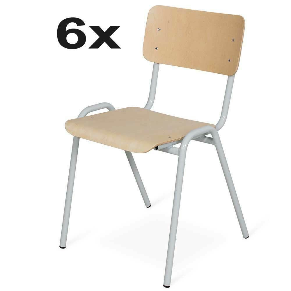 6-teiliges Stapelstuhl-Set, Gestell lichtgrau, Sitz/ Lehne aus Buche-Schichtholz