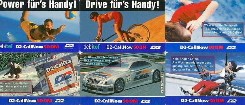 6 verschiedene Telefonkarten ,D2 - CallNow , leere 50 DM Karten, bei denen die Geheimzahl freigerubbelt werden musste. alle gebraucht und leer !