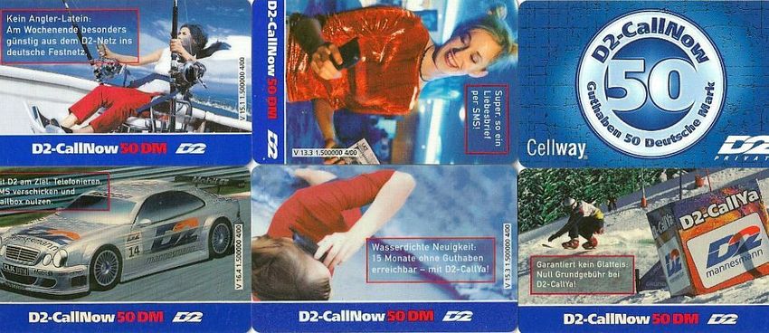 6 verschiedene Telefonkarten ,D2 - CallNow , leere 50 DM Karten, bei denen die Geheimzahl freigerubbelt werden musste. alle gebraucht und leer !