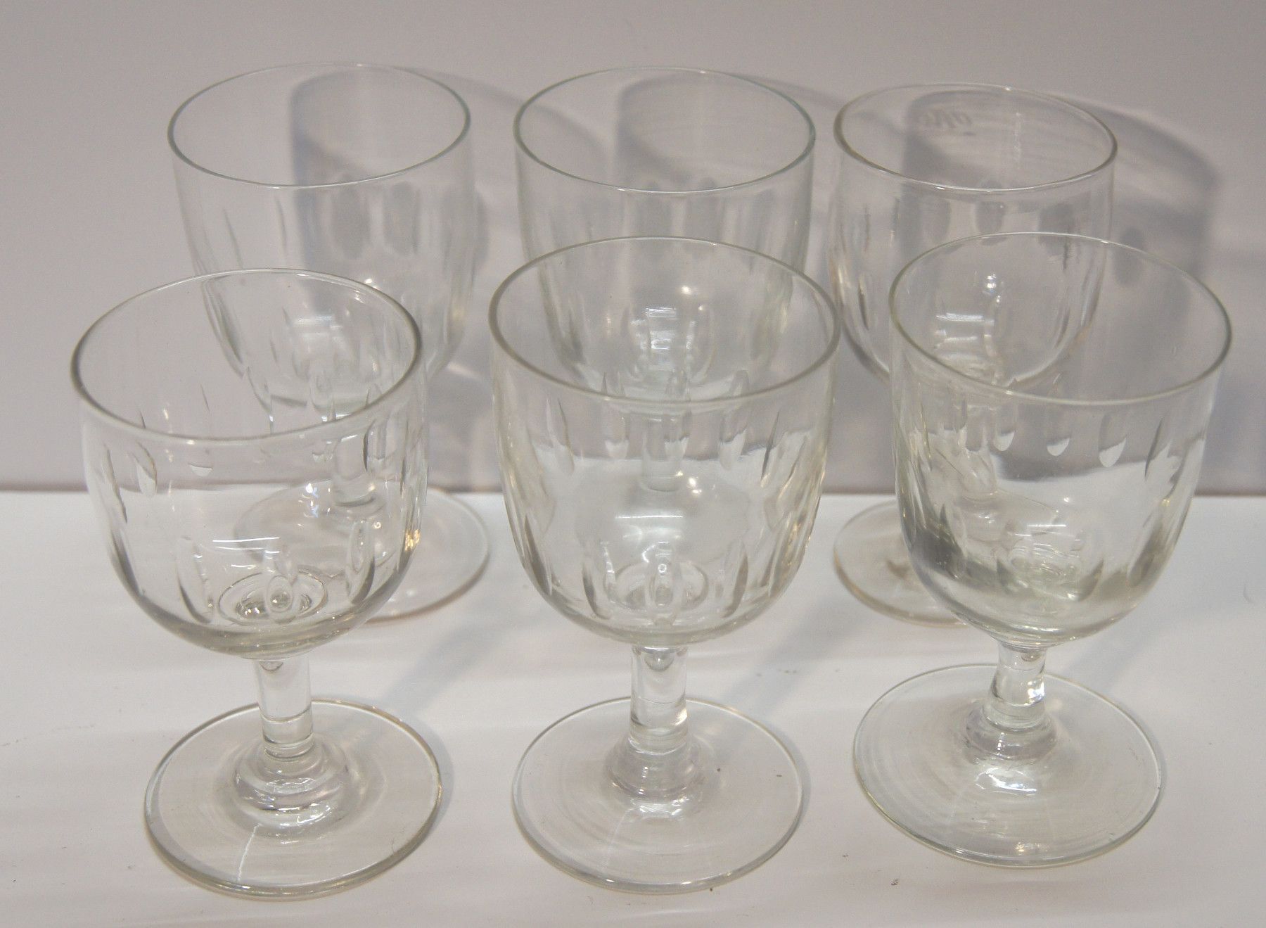 Sechs Weinbrand-Gläser um 1910. Gut erhalten! Maße: Höhe 12 cm. Antikes am Deich - Inh: Oliver Kipp-Trense