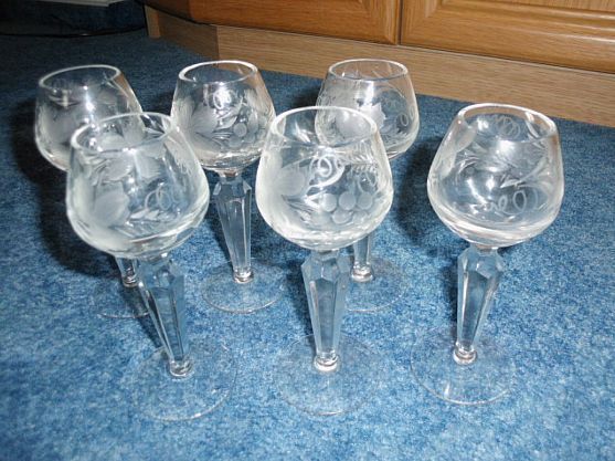 6 wunderschöne Schnaps bzw. Likörgläser mit Schliff und Stiel