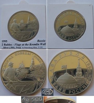 1995-2 Rubles-Russia-Victory Parade in Moscow (Flags-Kremlin Wall)-Silver coin-Proof