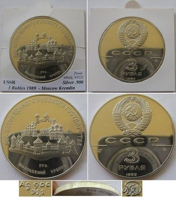 1989-USSR-3 Rubles-Moscow Kremlin-silver rare coin-mintage:40 000 pcs (1 oz silver)