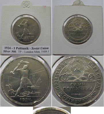 1924 - USSR - 1 poltinnik (TP-London Mint) - silver coin