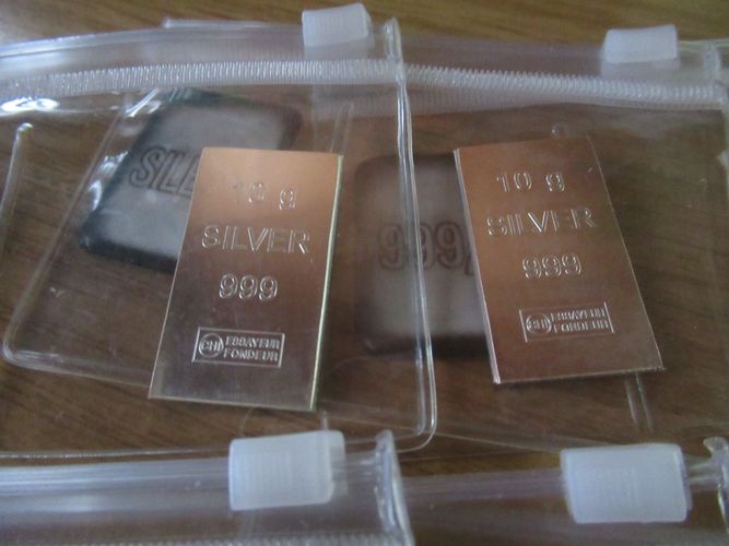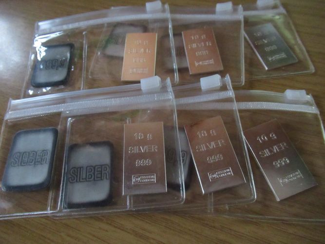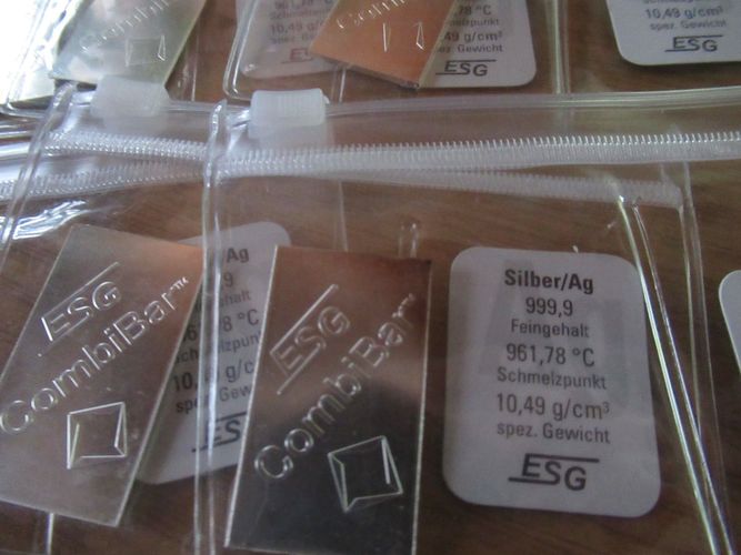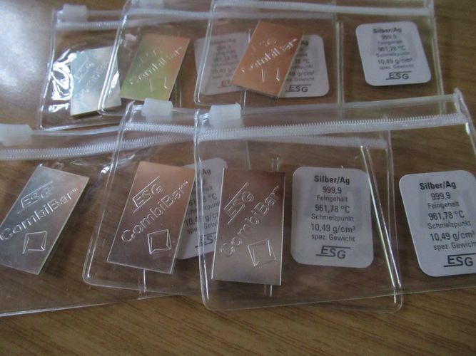 Ich biete hier 6 x 10g Silberbarren, ESG CombiBar, 999 Ag, zum Verkauf an. Die Bilder sind Bestandteil der Beschreibung. Kein Umtausch, keine Gewährleistung oder Rücknahme. Bitte bieten Sie nicht, wenn Sie mit dieser Vereinbarung nicht einverstanden sind.