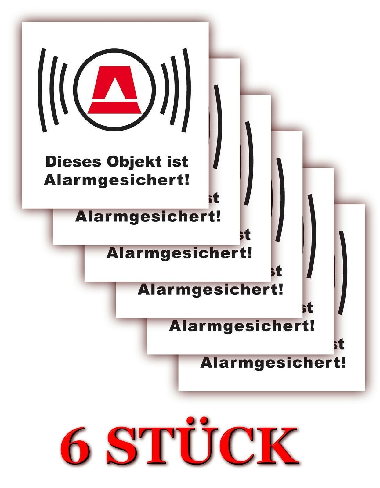 6 X Aufkleber Alarmgesichert Alarmaufkleber Alarm Alarmanlage 10 x 10 cm weiss