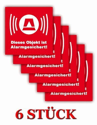 6 X Aufkleber Alarmgesichert Alarmaufkleber Alarm Videoüberwacht Alarmanlage rot