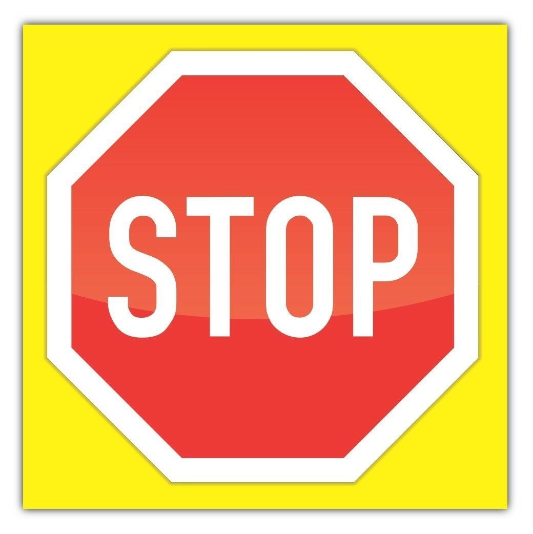 6 X Aufkleber Stopschild Format 98x98mm Folienaufkleber Stop gelb rot weiß