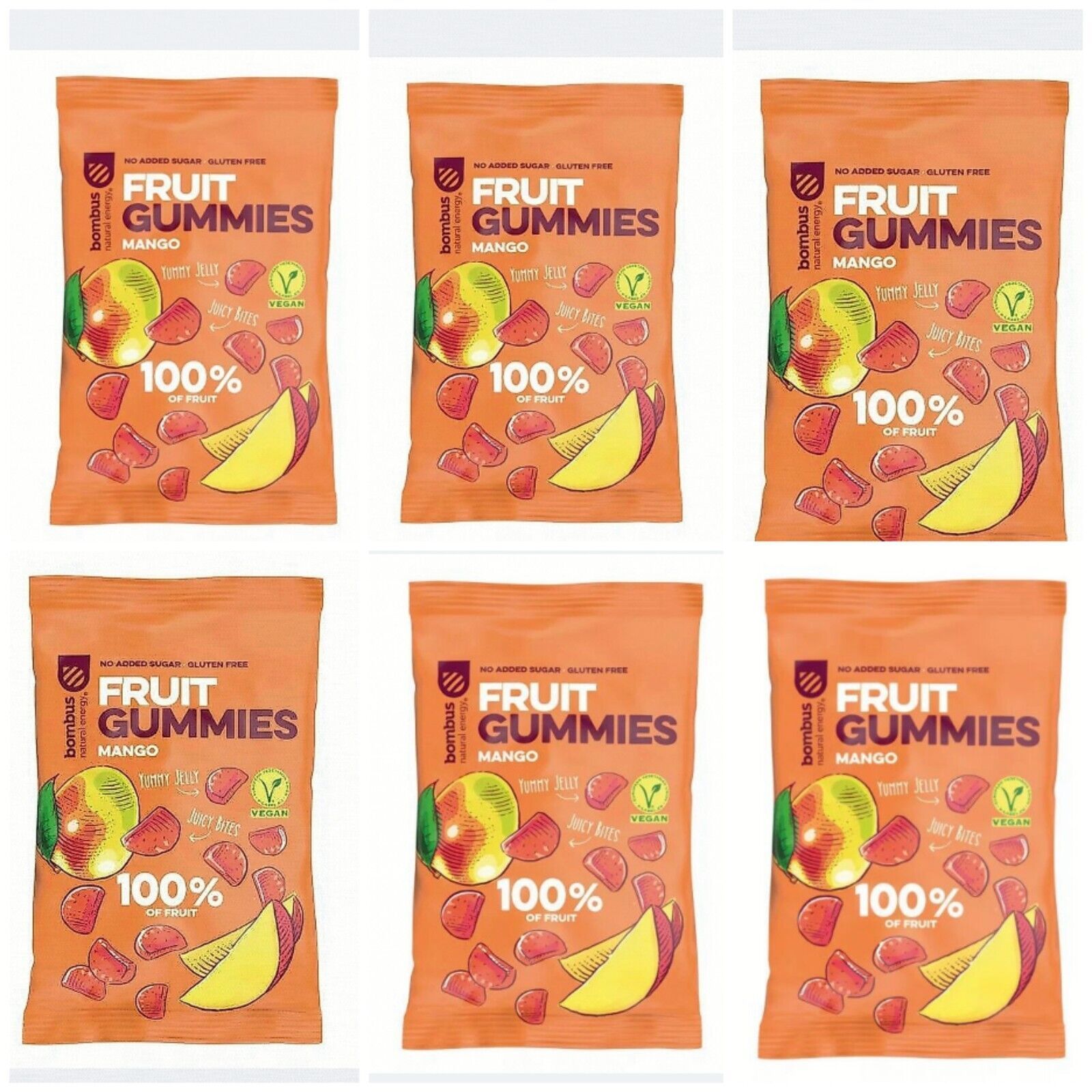 6 x Bombus Gummibärchen 100% Frucht Fruchtgummi Mango Vegan Ohne Zuckerzusatz