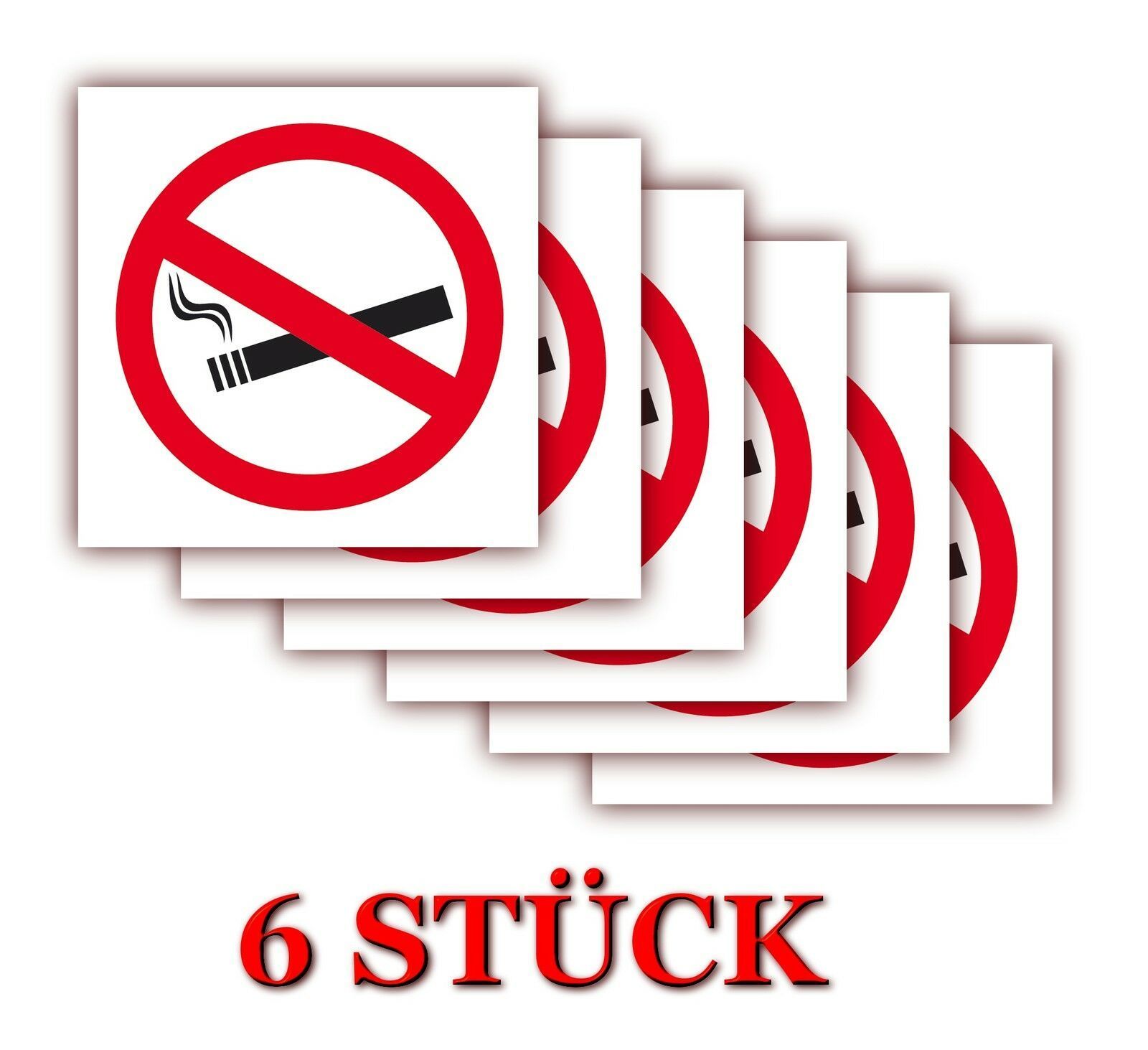 6 X Folien Aufkleber Rauchen verboten kein Raucherbereich Zigarette 10 x 10 cm