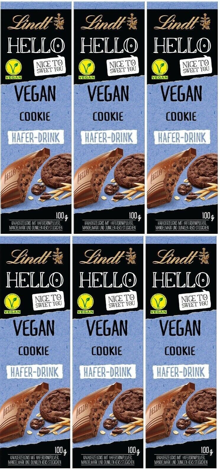 LINDT 6 x Lindt HELLO Vegan Schokolade Cookie Hafer Drink 100 gr