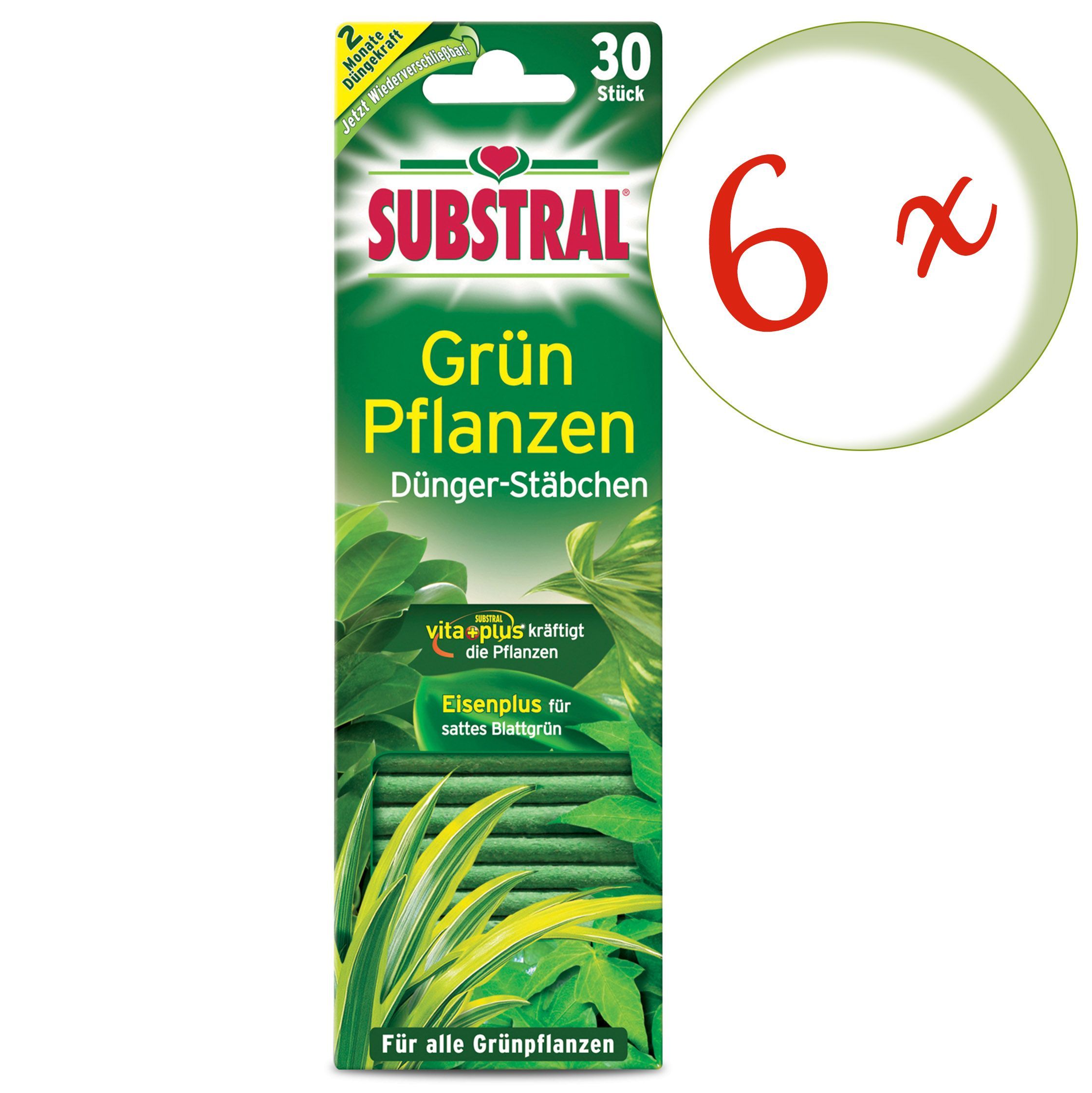 6 x SUBSTRAL® Grünpflanzen Dünger-Stäbchen, 30 Stück