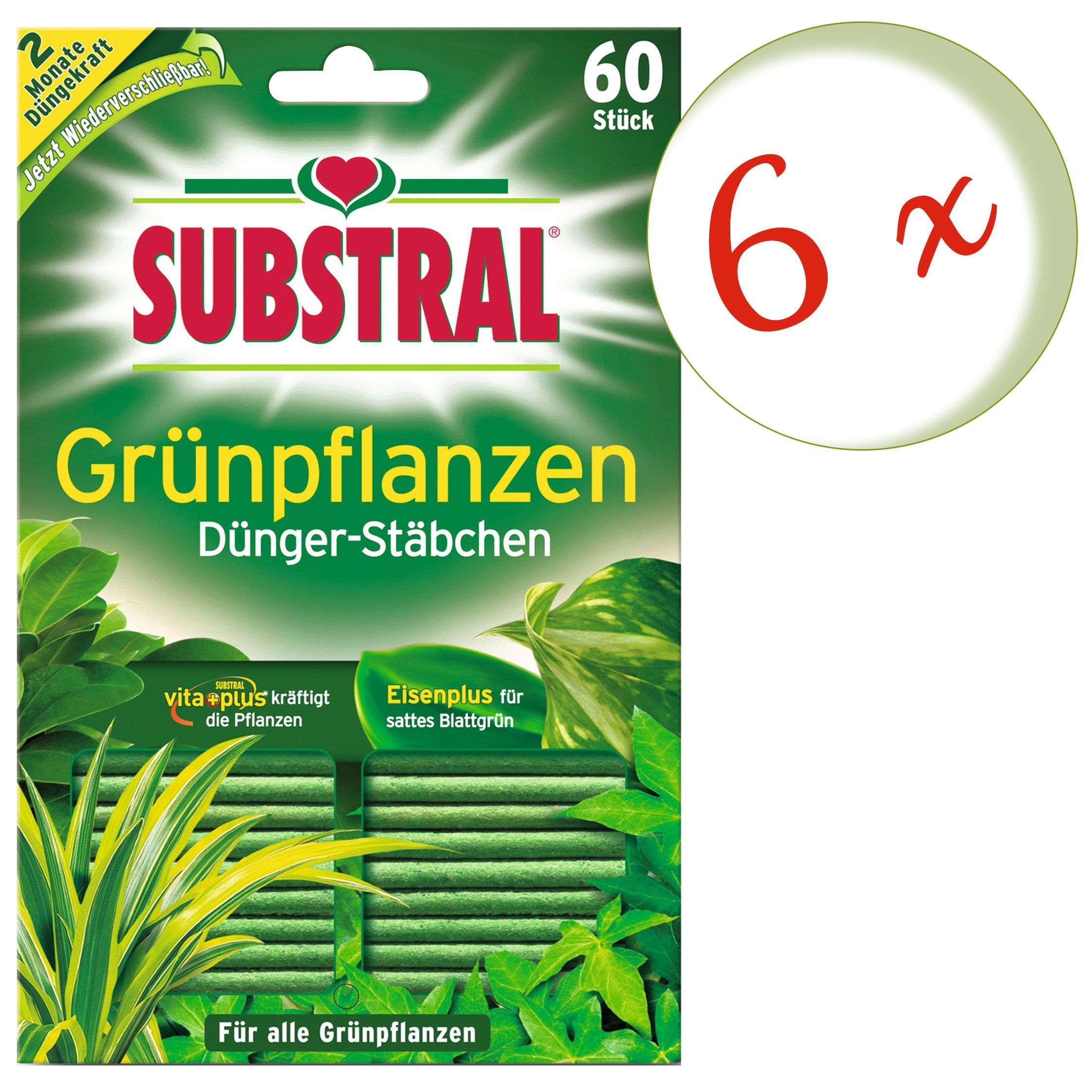6 x SUBSTRAL® Grünpflanzen Dünger-Stäbchen, 60 Stück