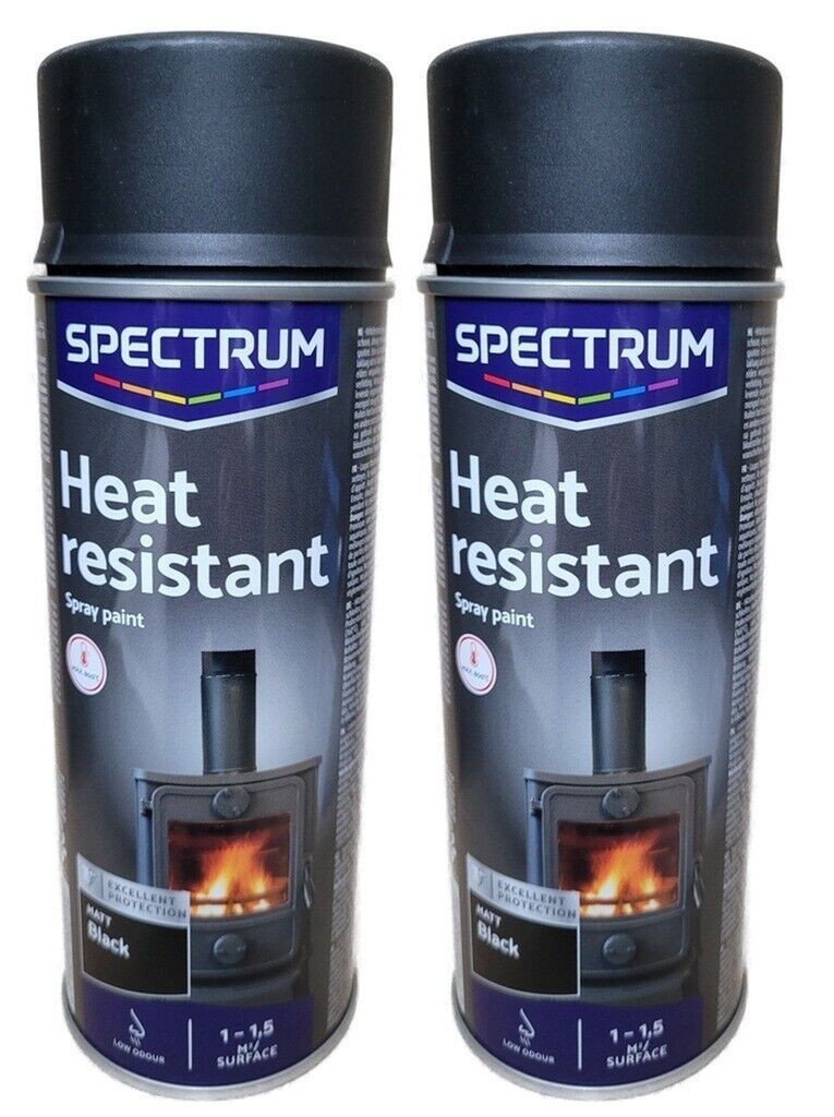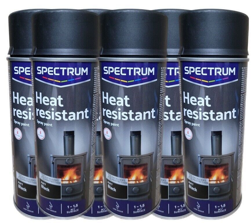 6 x Thermolack-spray Schwarz Matt bis 800°C 2 x 400ml Hitzebeständig