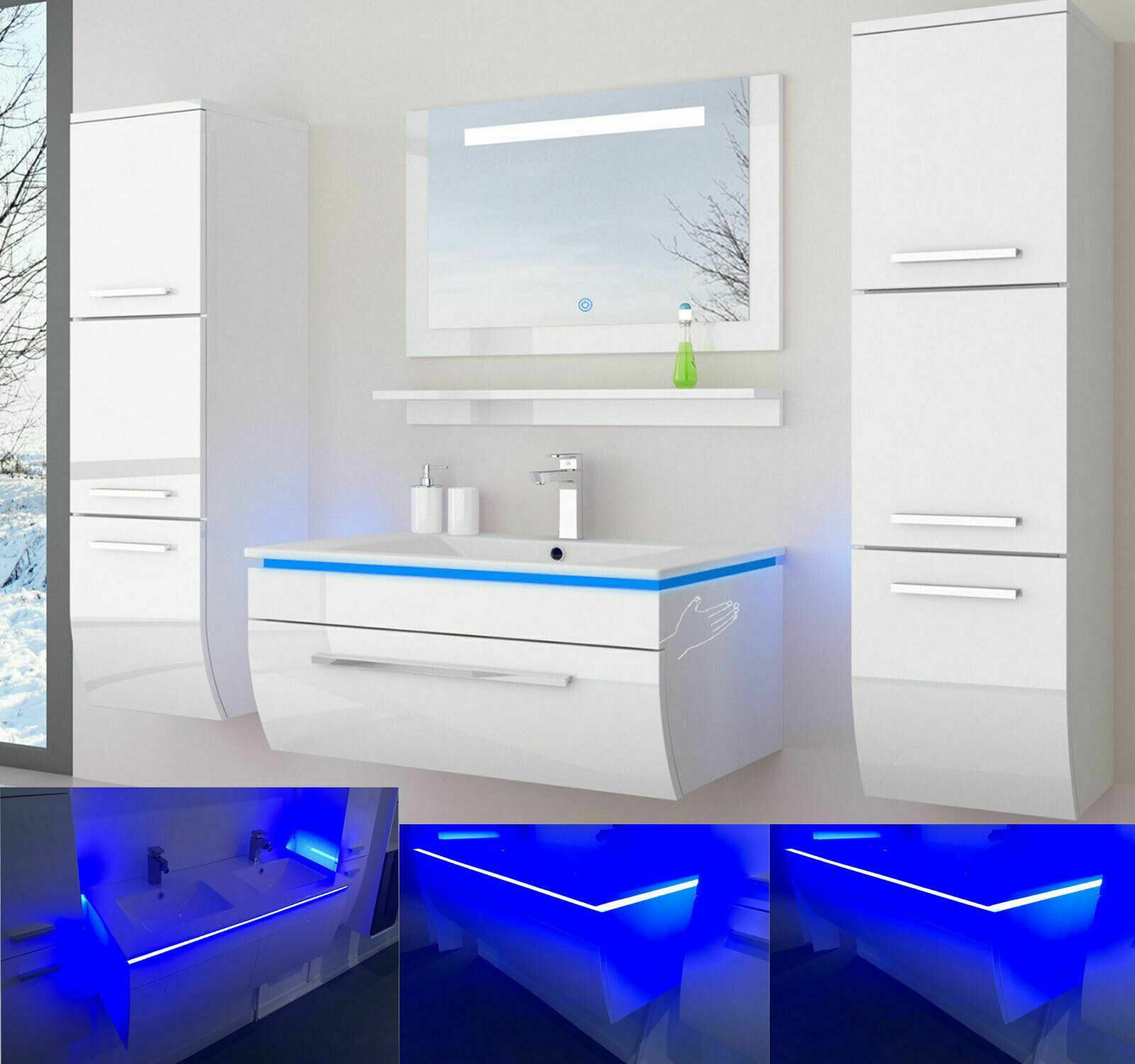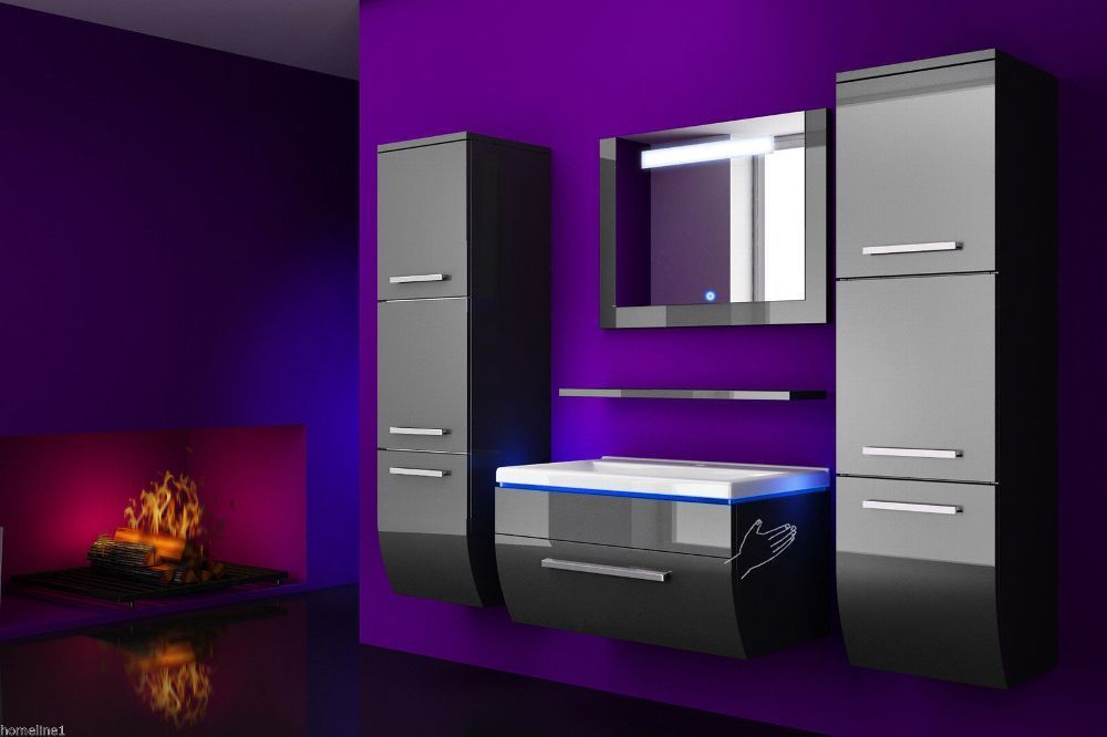 60 Badmöbel Set Schwarz / Weiß Komplett Hochglanz Badezimmermöbel Bis 6 Tlg LED 60 cm