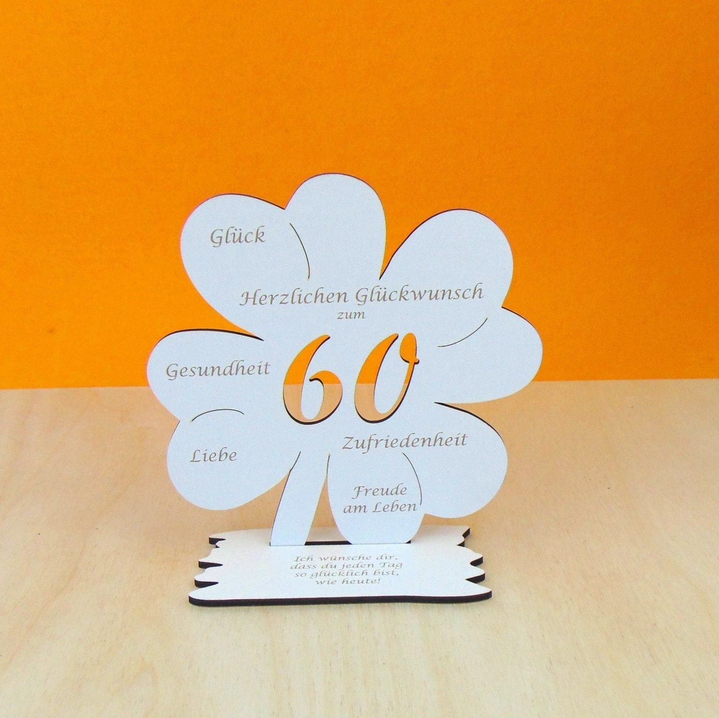 60. Geburtstag Gutscheingeschenk als Kleeblatt in 16 cm im Vintage Style, Weiß. Ein Halter auf der Rückseite dient für einen Gutschein oder ihr Geldscheine. Beidseitig in der Farbe: Vintage Weiß beschichtet mit Gravierten Text. Ich wünsche dir, dass du jeden Tag so glücklich bist, wie heute! Unterplatte sind in 14 verschiedenen Sprüchen erhältlich, siehe Shop. Alle Geburtstagszahlen sind erhältlich. holzteilchen_diy
