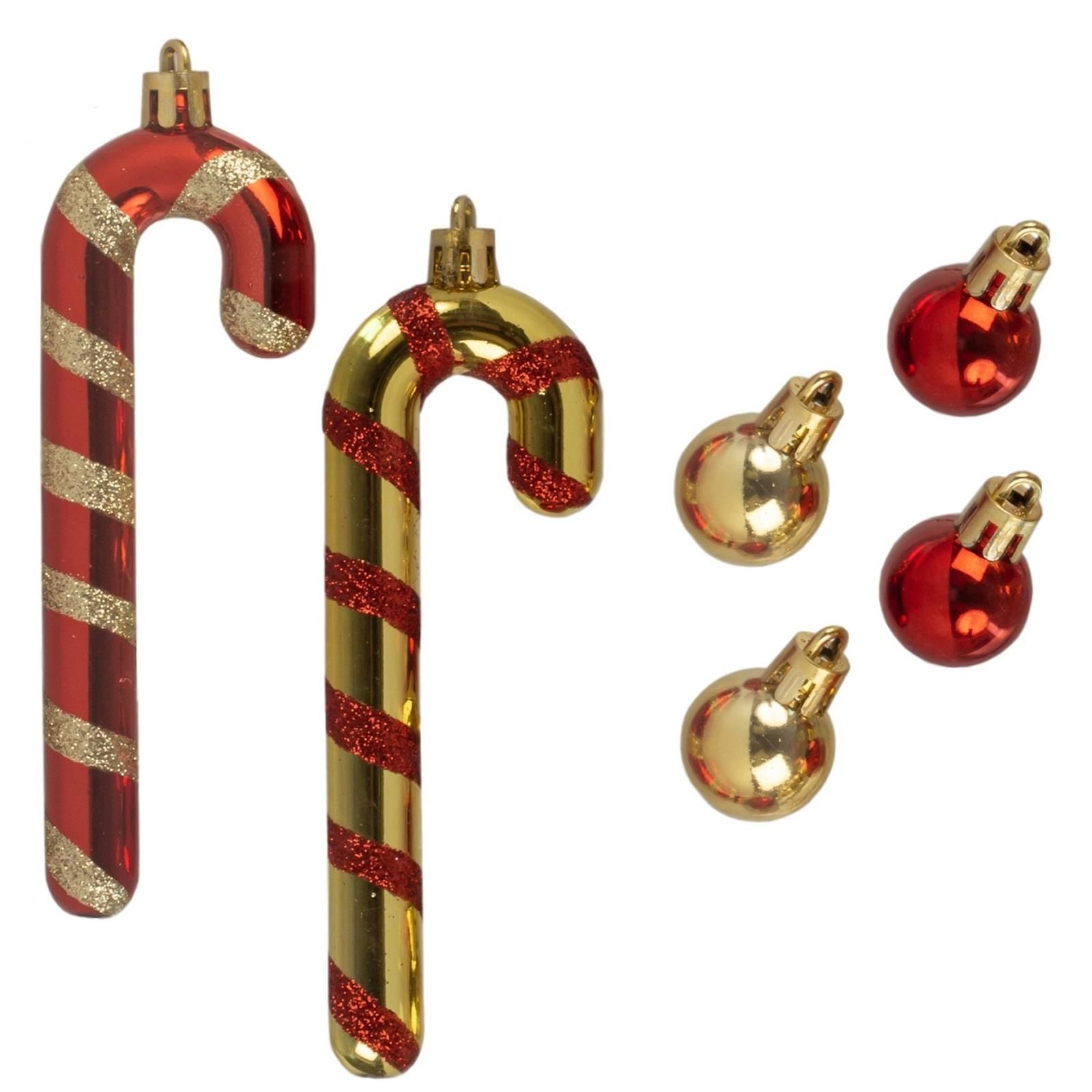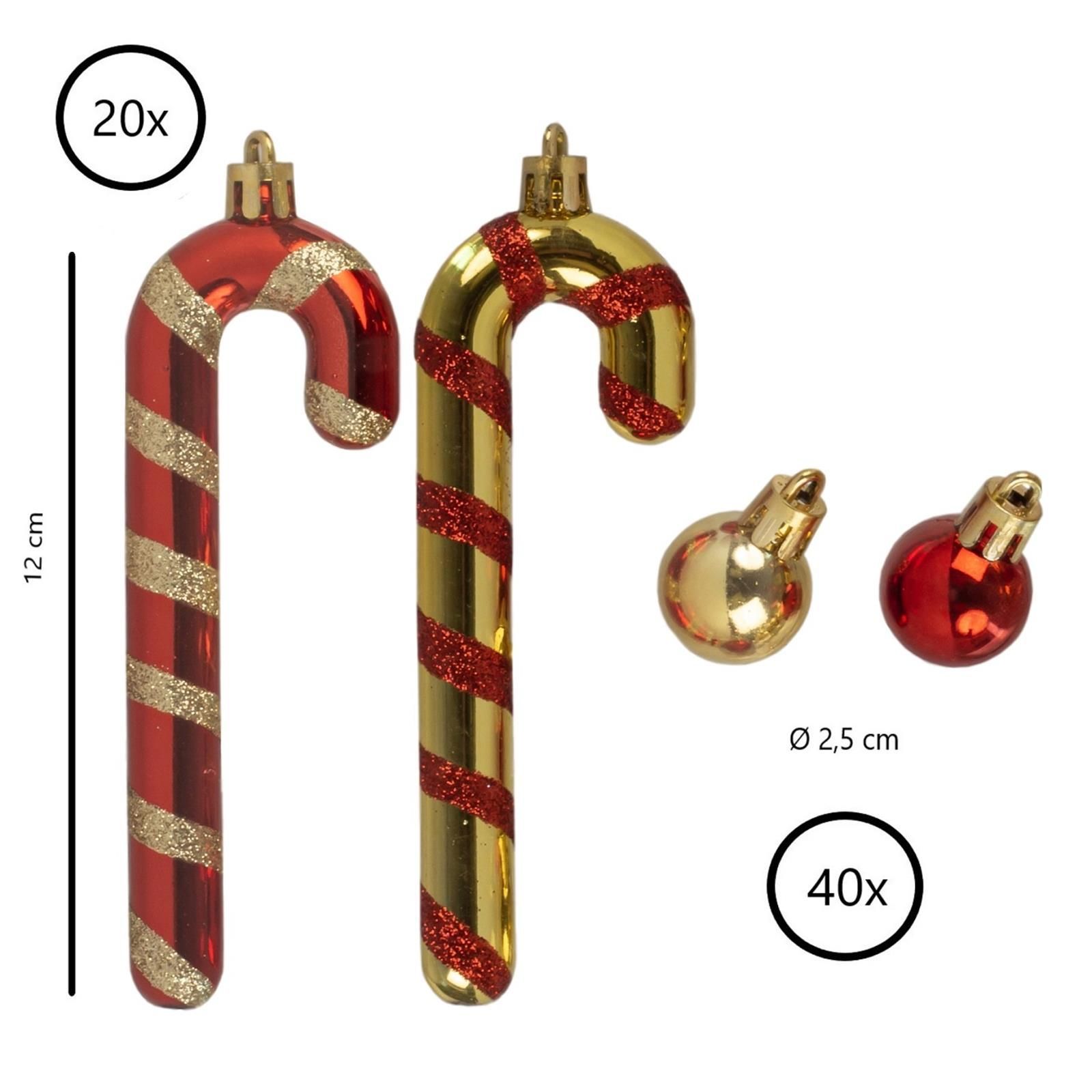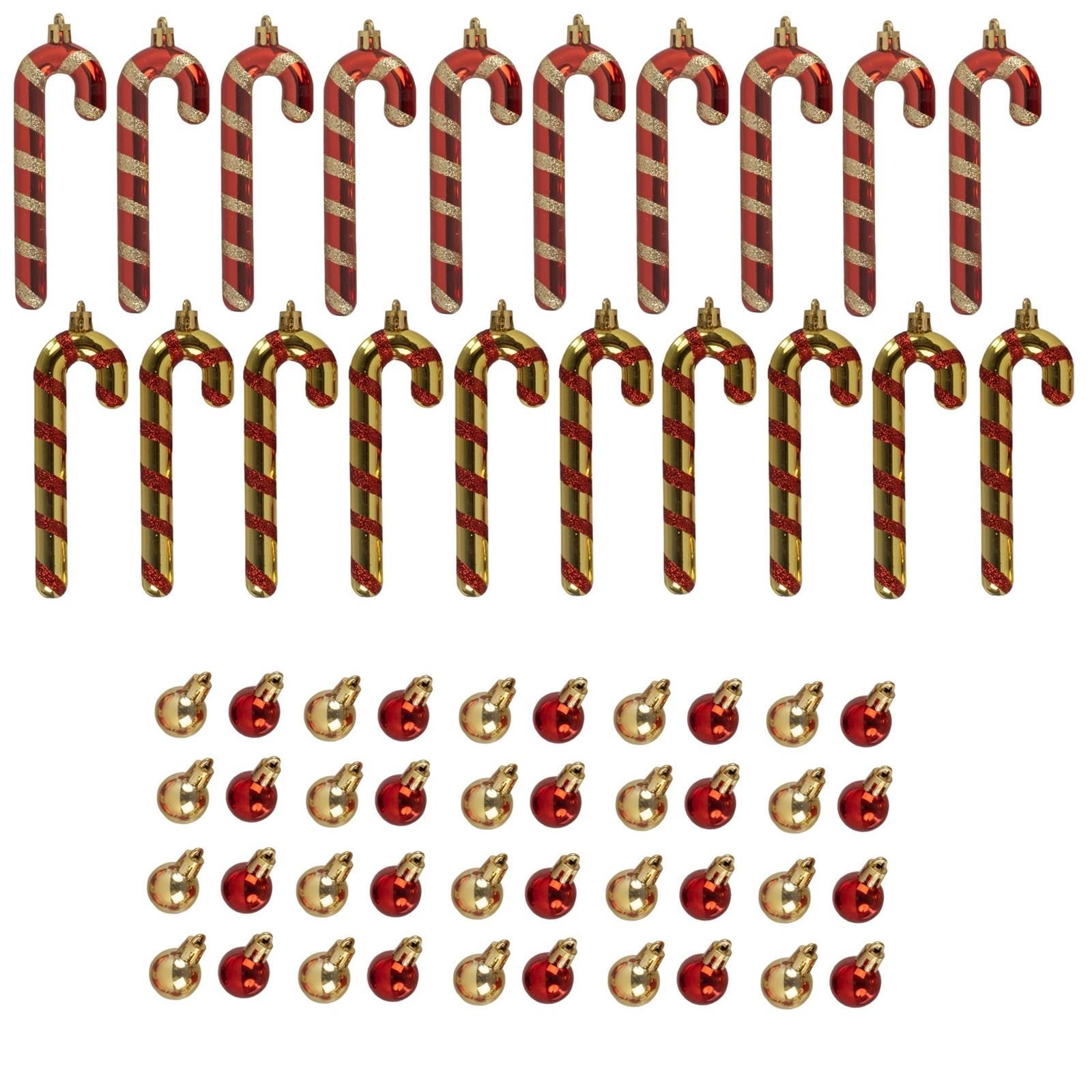 60 Stück Weihnachtsanhänger Zuckerstange Kugel Rot Gold