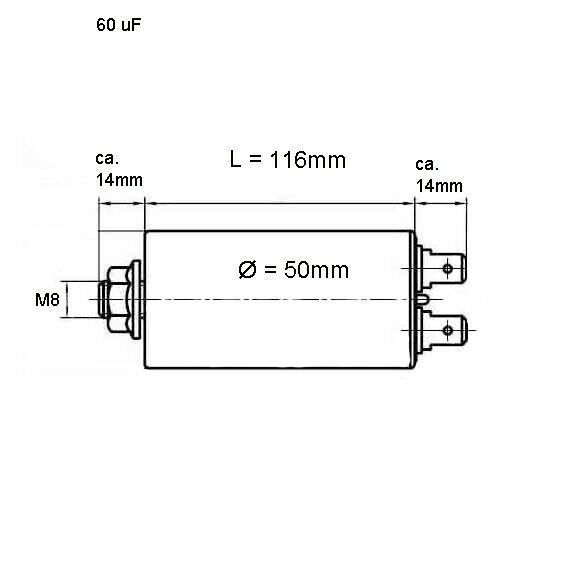 60 uF Motorkondensator 60uF Anlaufkondensator Kondensator 450 Volt, M8, Stecker