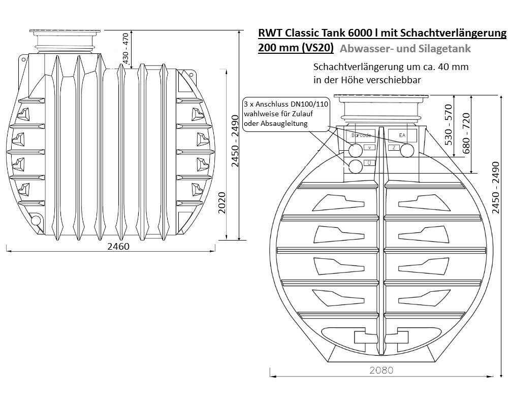 6000 Liter Abwassersammelgrube Fäkalientank Silagetank Abwassertank