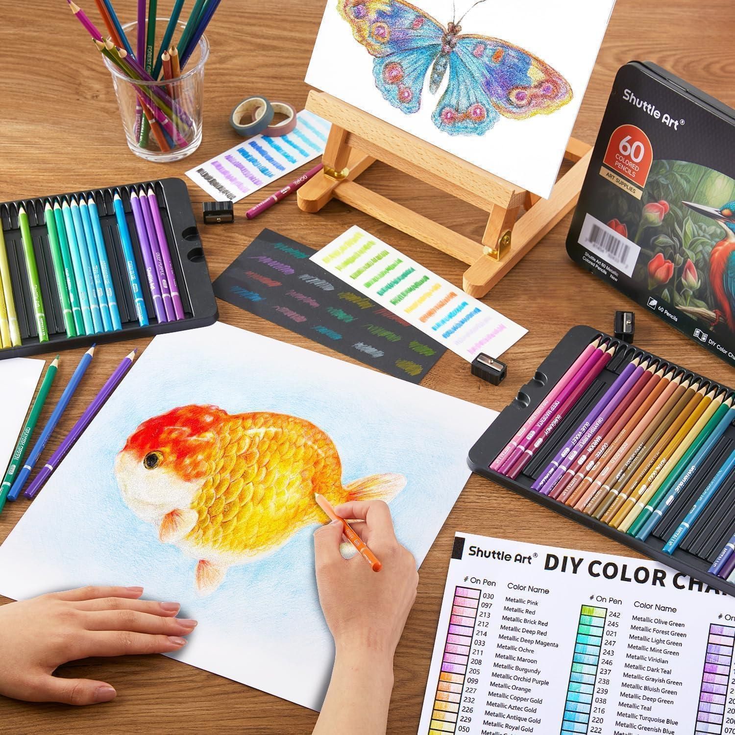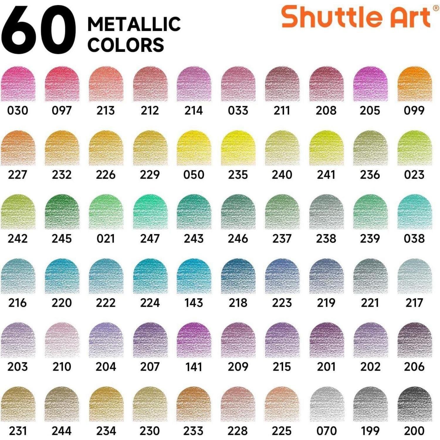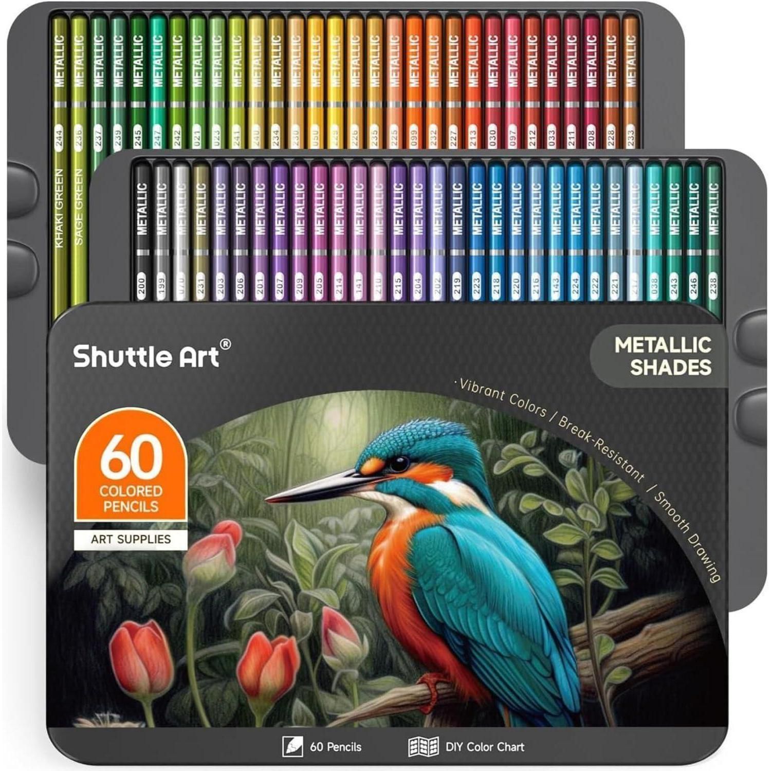 60er Set Shuttle Art Metallic Buntstifte für Erwachsene, Glitzer Malstifte