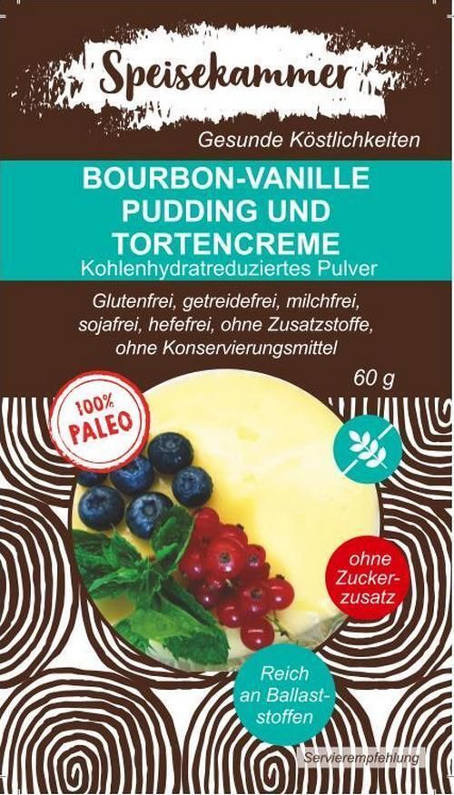 1. Speisekammer Paleo Bourbon-Vanille Pudding und Tortecreme Pulver 60 g paleo glutenfrei sojafrei maisfrei kohlenhydratreduziert * Im Vergleich zu allen anderen glutenfreien Puddings (die einen hohen Stärkegehalt haben), enthält unser Pudding ca. 30% weniger Kohlenhydrate. Zutaten : Pfeilwurzelmehl