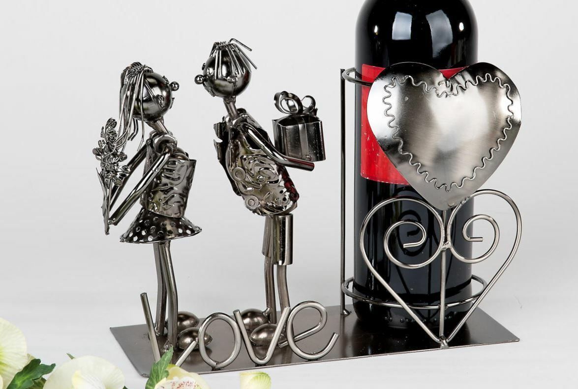 formano 614742 Flaschenhalter 24cm Paar mit Herz kunstvolle Handarbeit aus Eisen