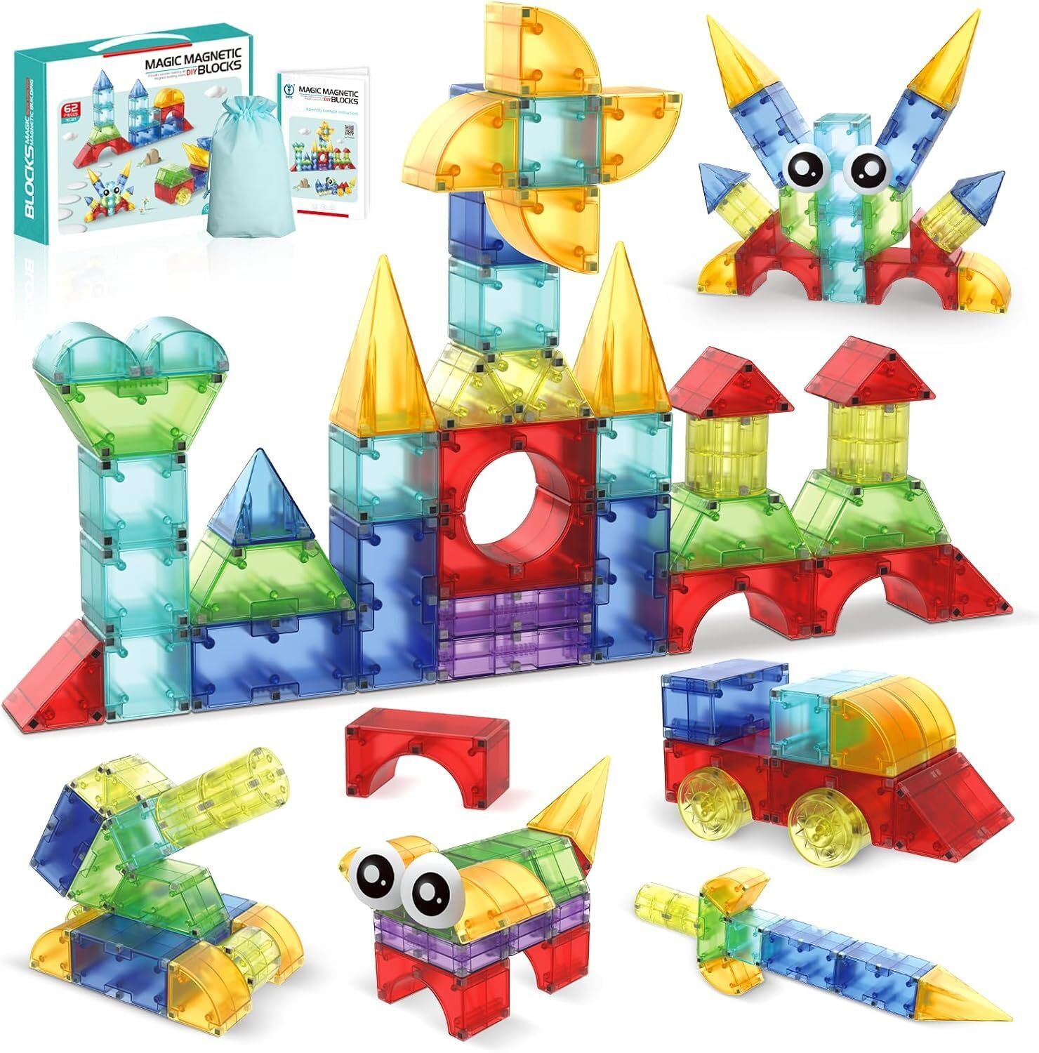 62 Stk Blocks Magnetic Building Kinderspielzeug Magnetische Bausteine Blocke DE
