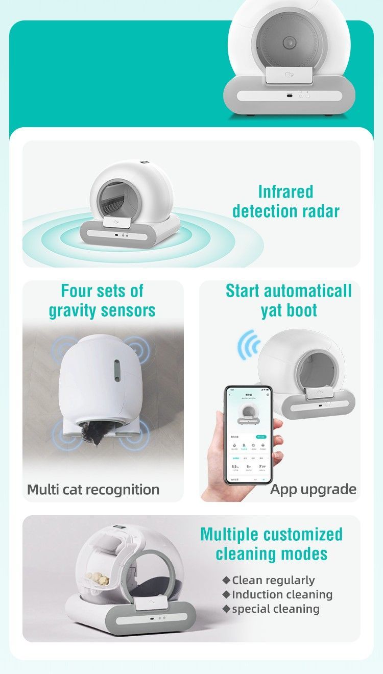 65L Fassung Selbstreinigende Katzentoilette Automatische Reinigung mit Geruchssperre