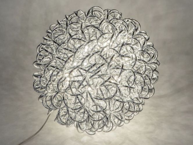Formano 660947 Lampe Kugel Silber 40cm aus geflochtenem Aluminium mit warm weißen LEDs